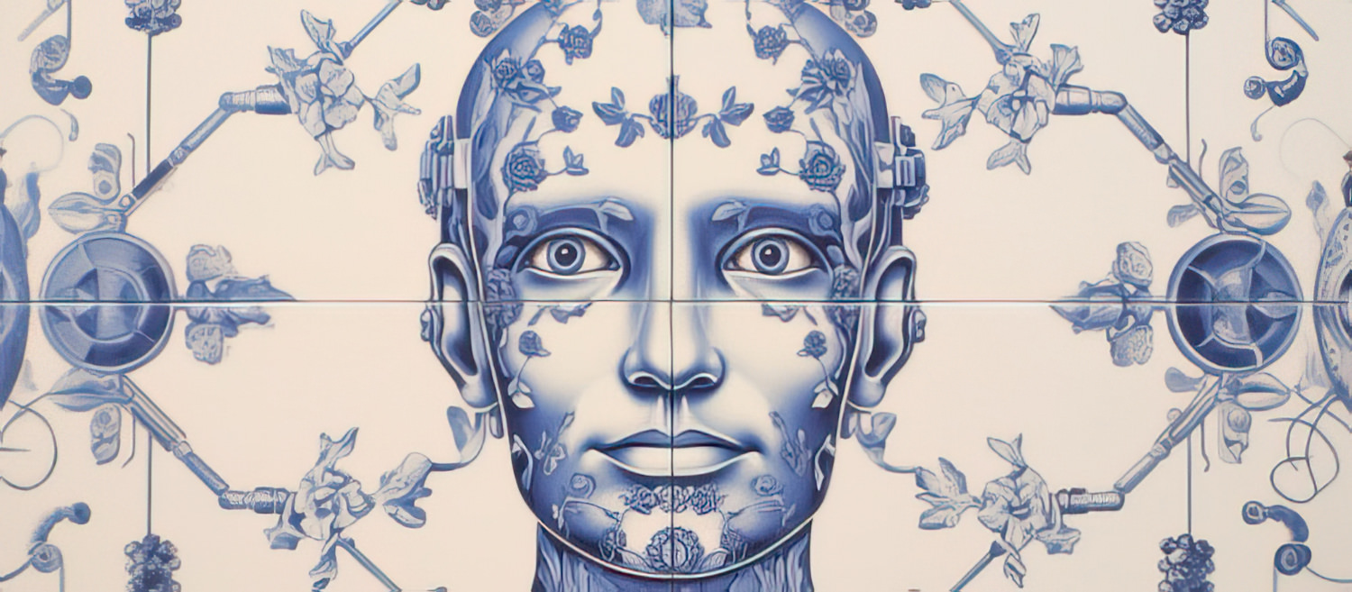 Integration of geometric shapes within human forms.