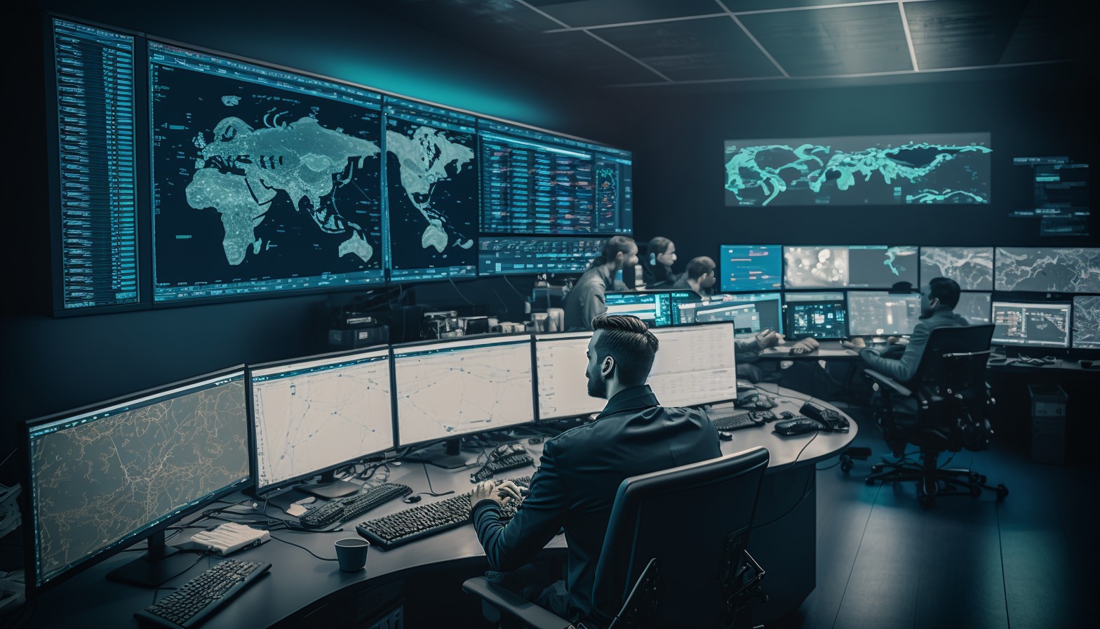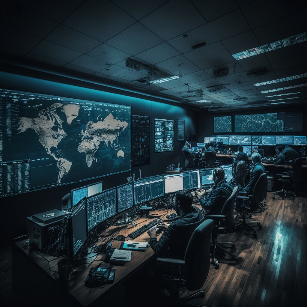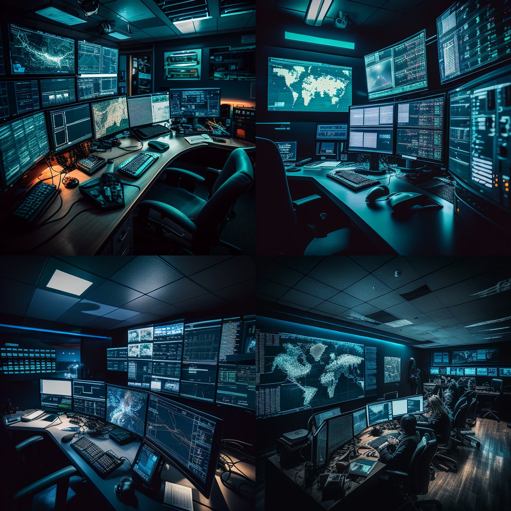Inside a cyber security operations centre, photo realism, Unreal Engine, Cinematic, Color Grading, portrait Photography, Shot on 24mm lense, Ultra - Wide Angle, Depth of Field, hyper - detailed, beautifully color - coded, insane details, intricate details, beautifully color graded, Unreal Engine, Cinematic, Color Grading, Editorial Photography Photography, Photoshoot, Depth of Field, DOF, White Balance, 32k, Super - Resolution, Megapixel, ProPhoto RGB, VR, Lonely, Good, Massive, Halfrear Lighting, Backlight, Natural Lighting, Incandescent, Optical Fiber, Moody Lighting, Cinematic Lighting, Studio Lighting, Soft Lighting, Volumetric, Contre-Jour, Beautiful Lighting, Accent Lighting, Global Illumination, Screen Space Global Illumination, Ray Tracing Global Illumination, Optics, Scattering, Glowing, Shadows, Rough, Shimmering, Ray Tracing Reflections, Lumen Reflections, Screen Space Reflections, Diffraction Grading, Chromatic Aberration, GB Displacement, Scan Lines, Ray Traced, Ray Tracing Ambient Occlusion, Anti-Aliasing, FKAA, TXAA, RTX, SSAO, Shaders, OpenGL - Shaders, GLSL - Shaders, Post Processing, Post-Production, Cel Shading, Tone Mapping, CGI, VFX, SFX, insanely detailed and intricate, hypermaximalist, elegant, hyper realistic, super detailed, photography, --ar 16:9 --c 2 --q 2