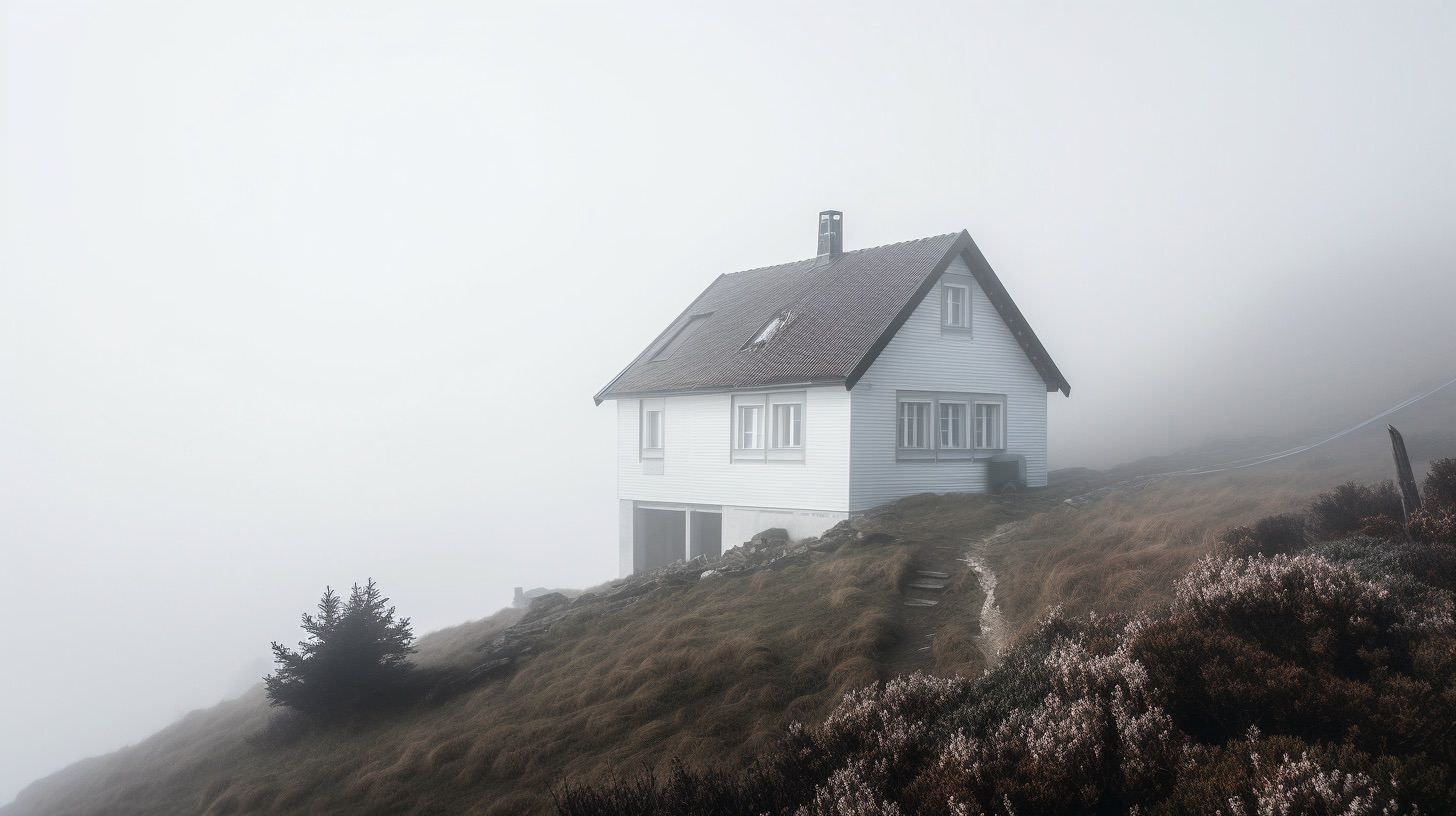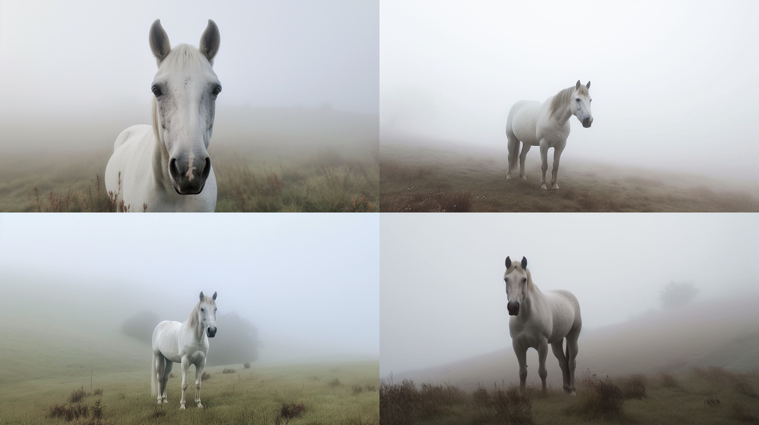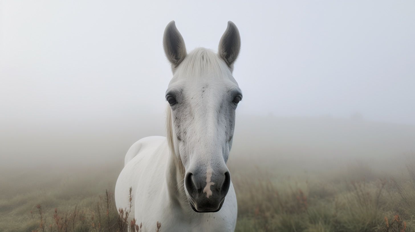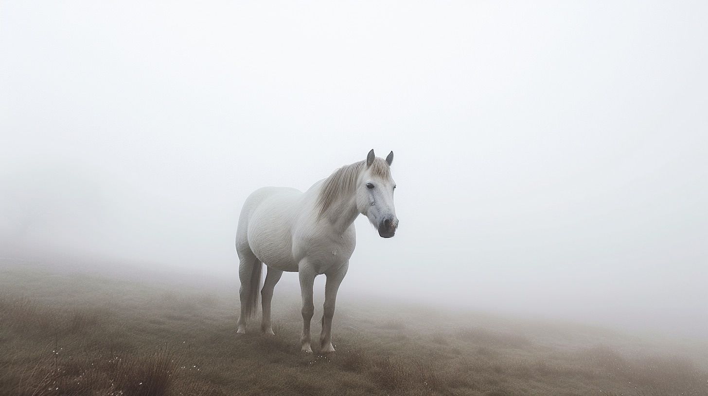 a horse in the distance in dense white fog. --ar 16:9 --v 5