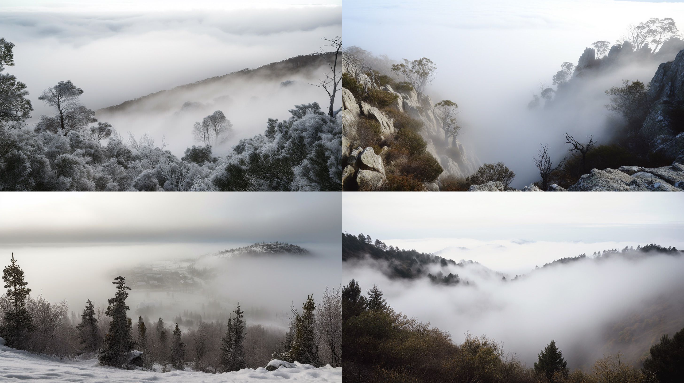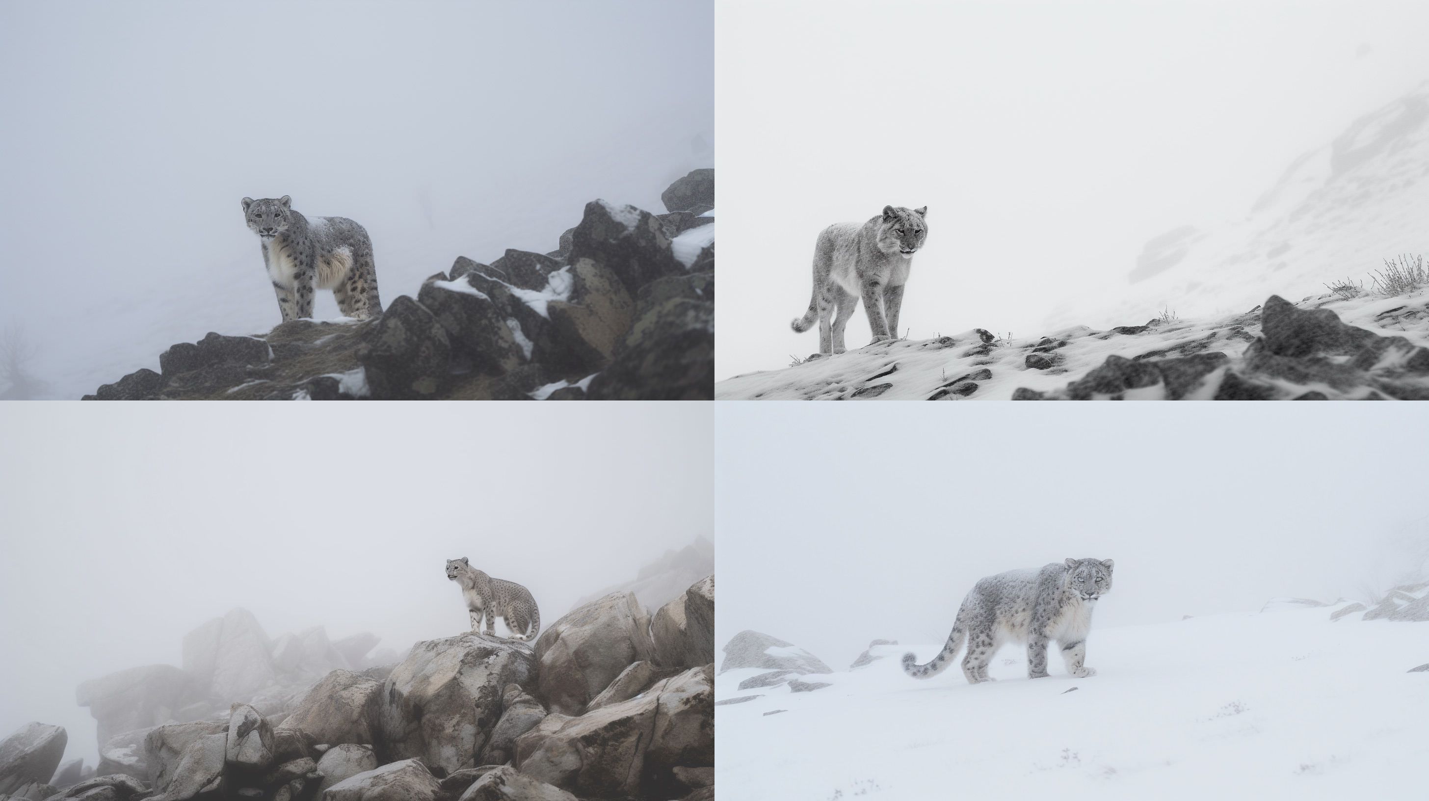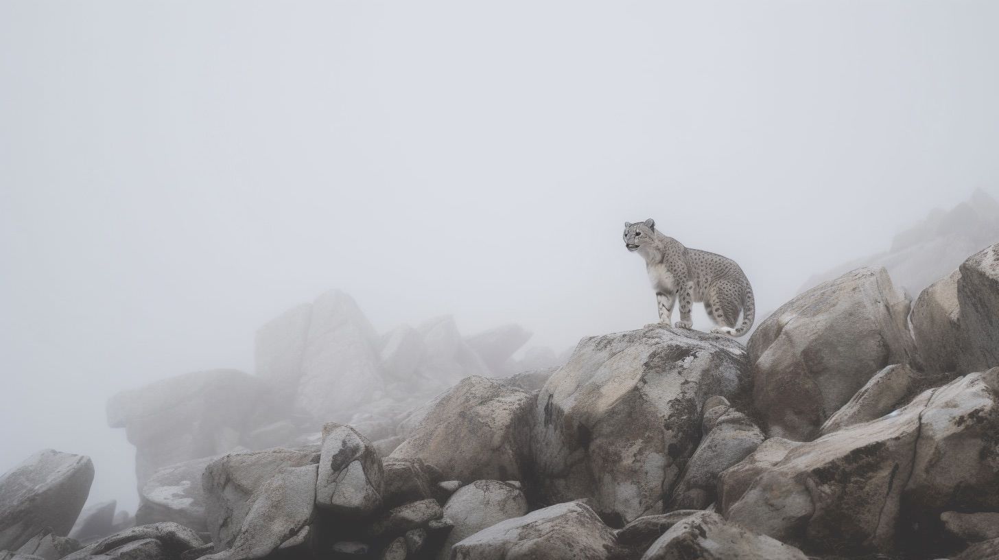 a snowleopard in dense white fog --ar 16:9 --v 5