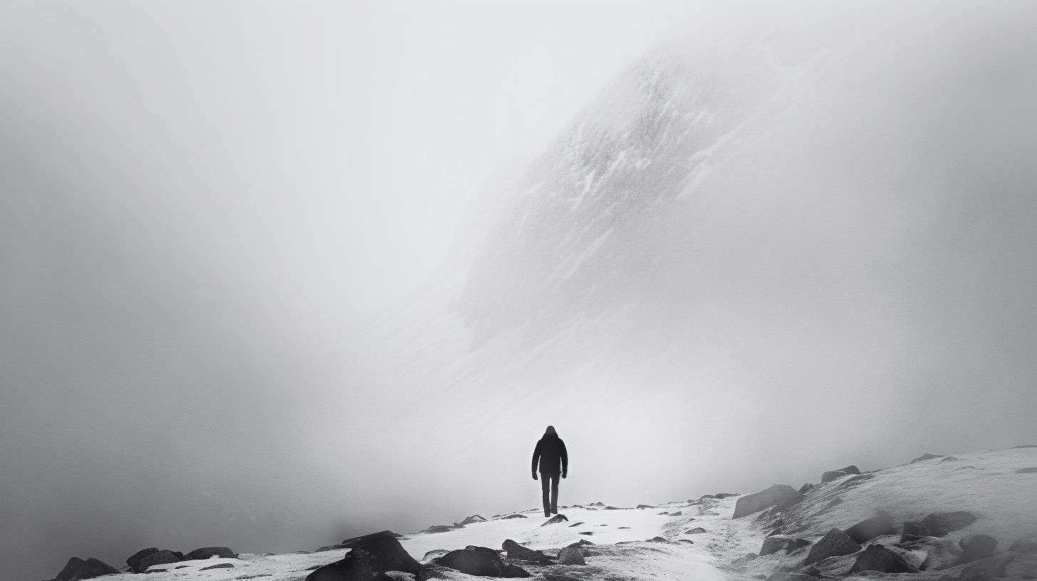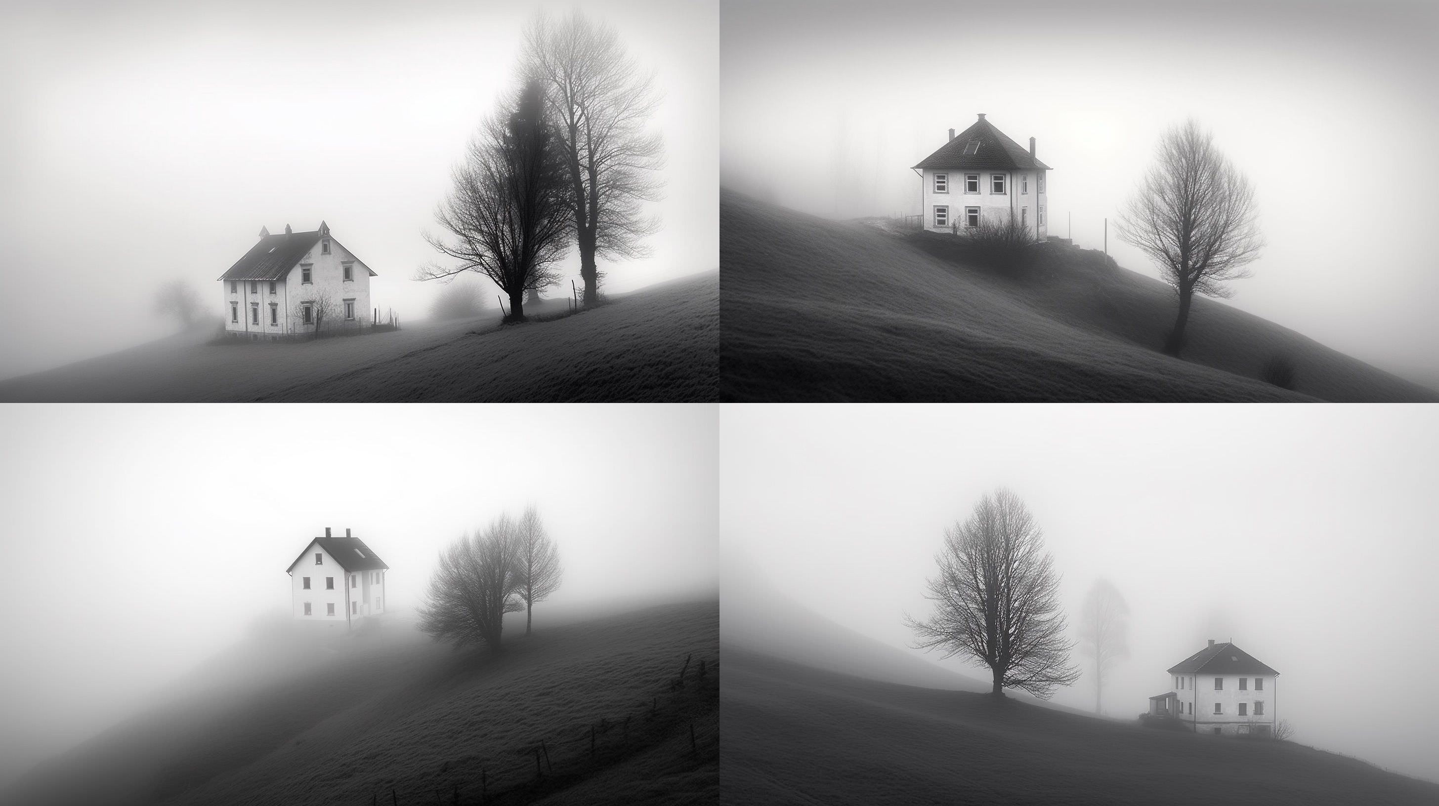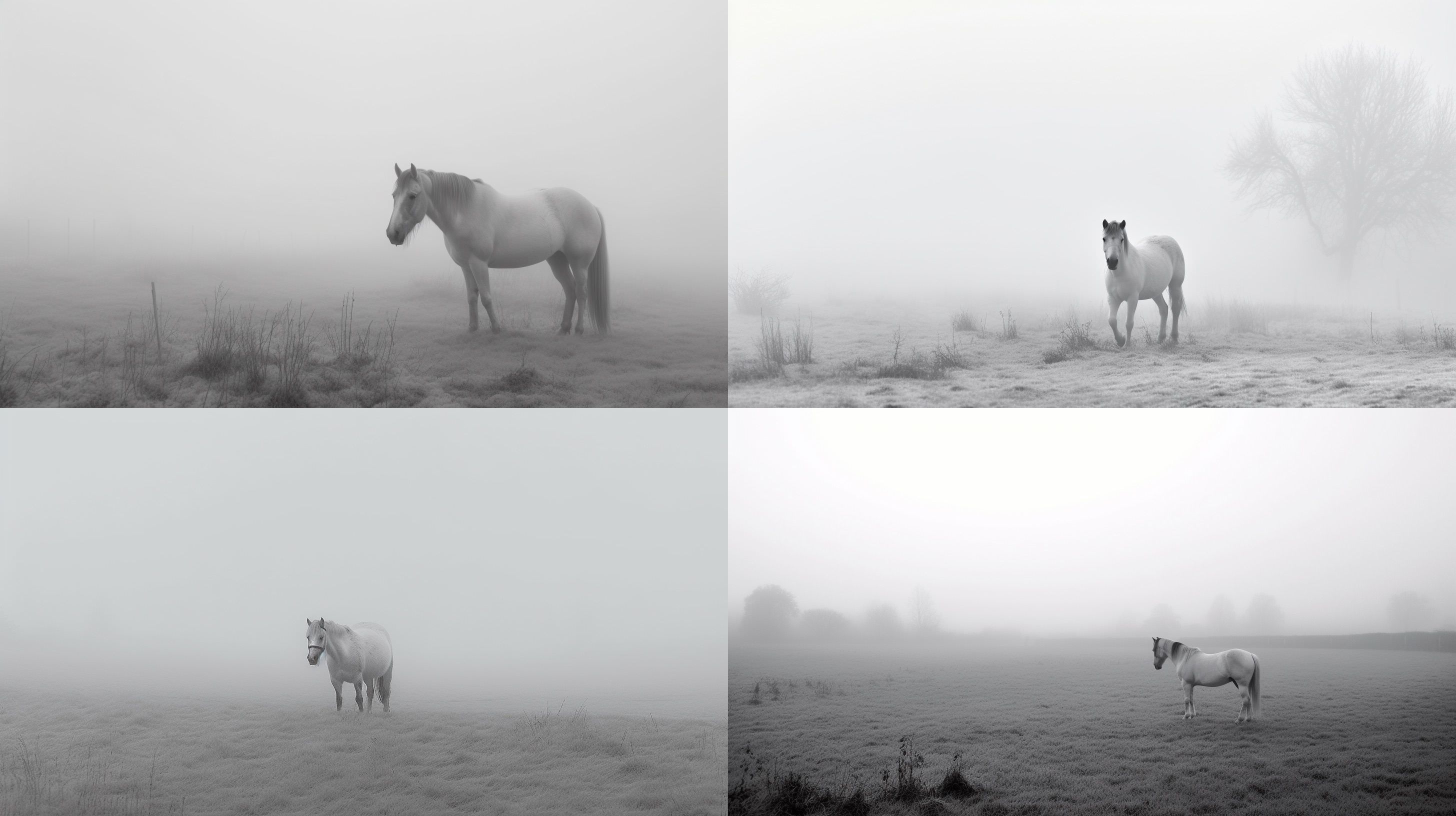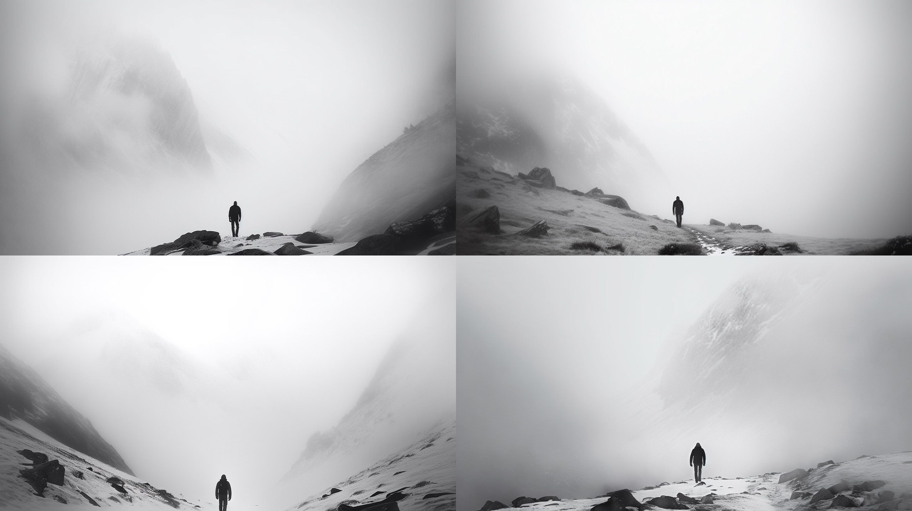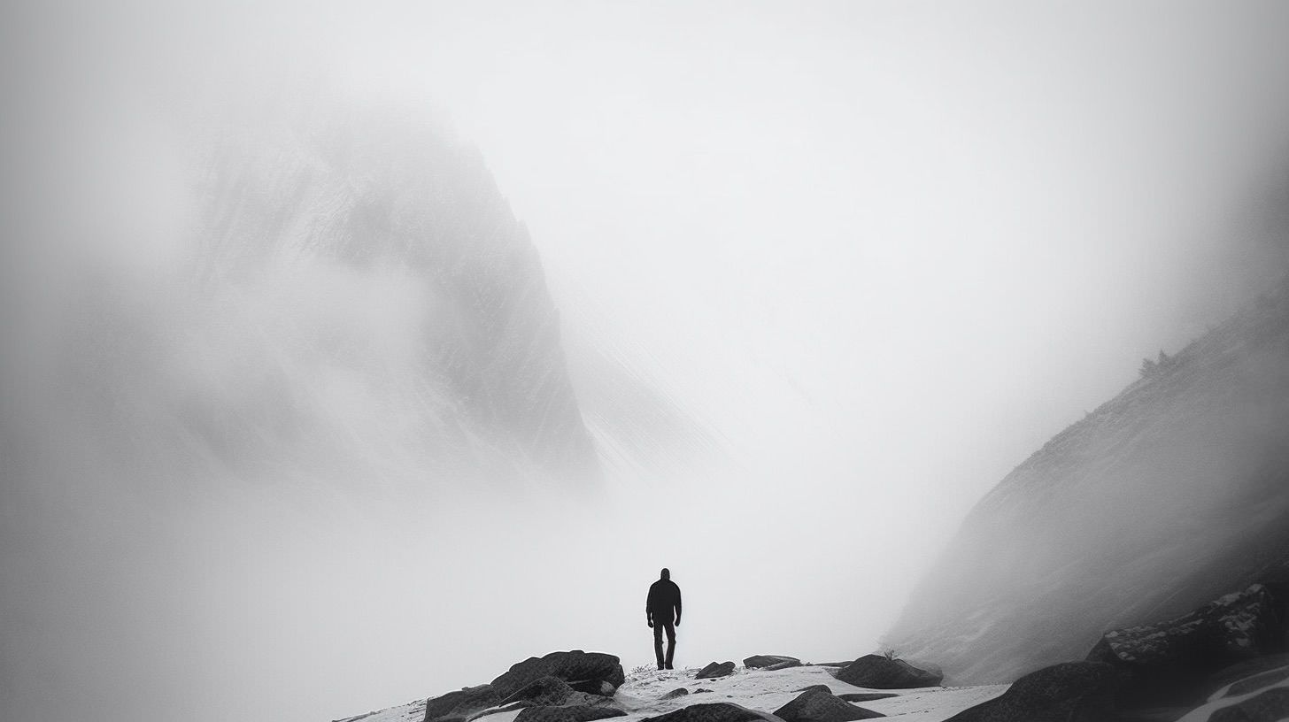 Create monochromatic scenes, where the subject stands amidst dense white fog, which engulfs the surroundings and obscures the background. The colorless image focuses on the subject’s silhouette and subtle details, resulting in a haunting, captivating visual that invites viewers to contemplate the subject’s story and connection to the obscured surroundings.