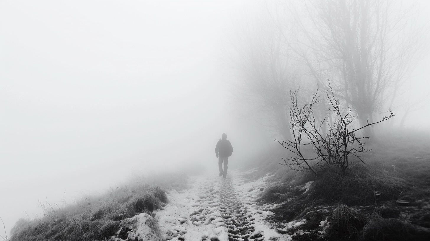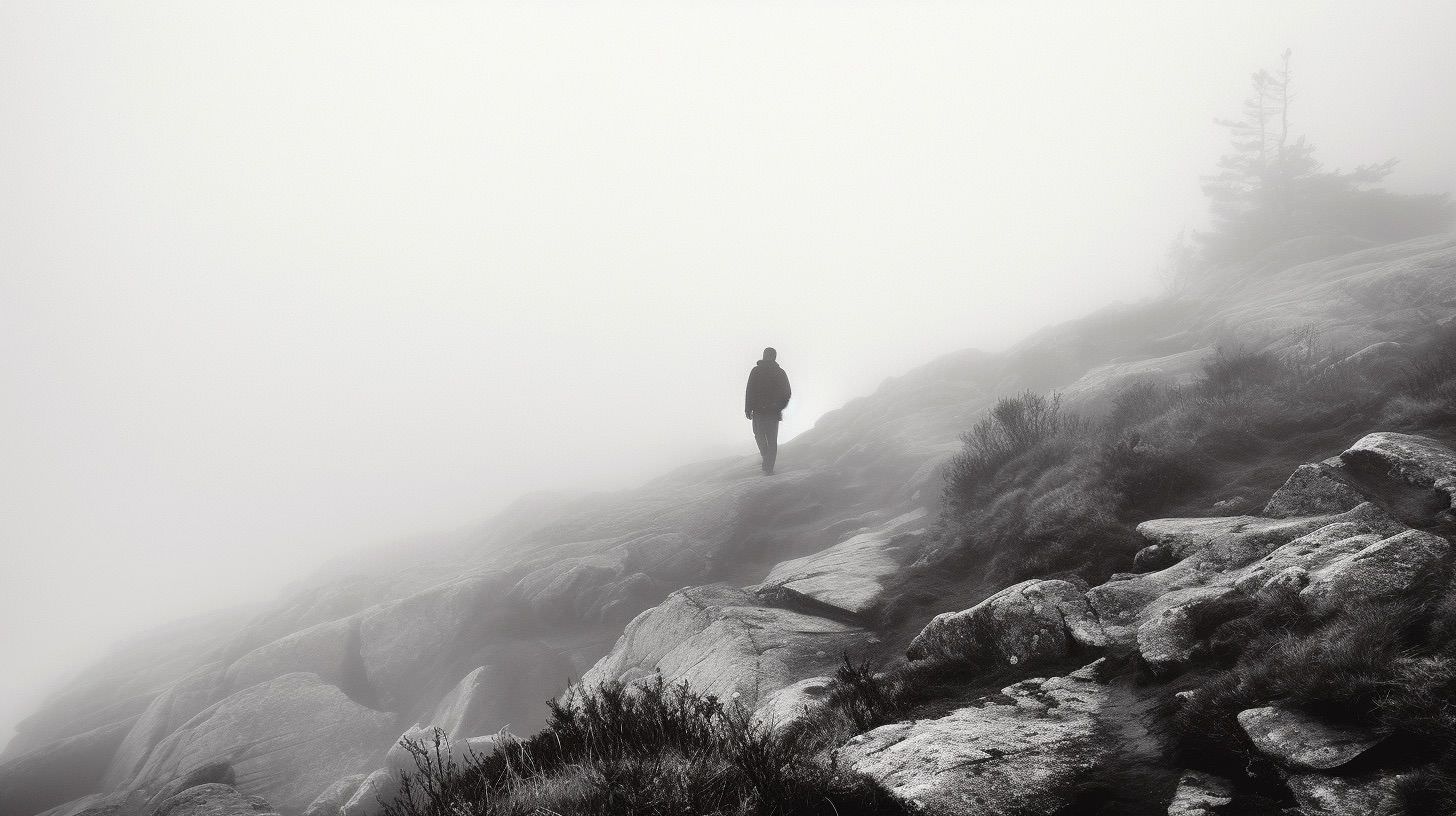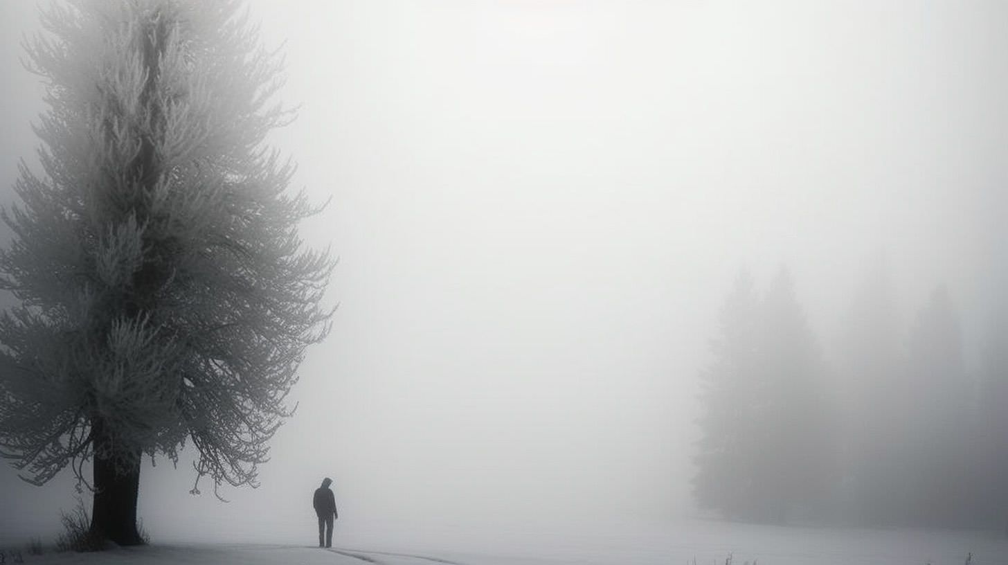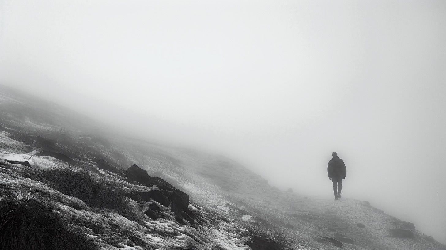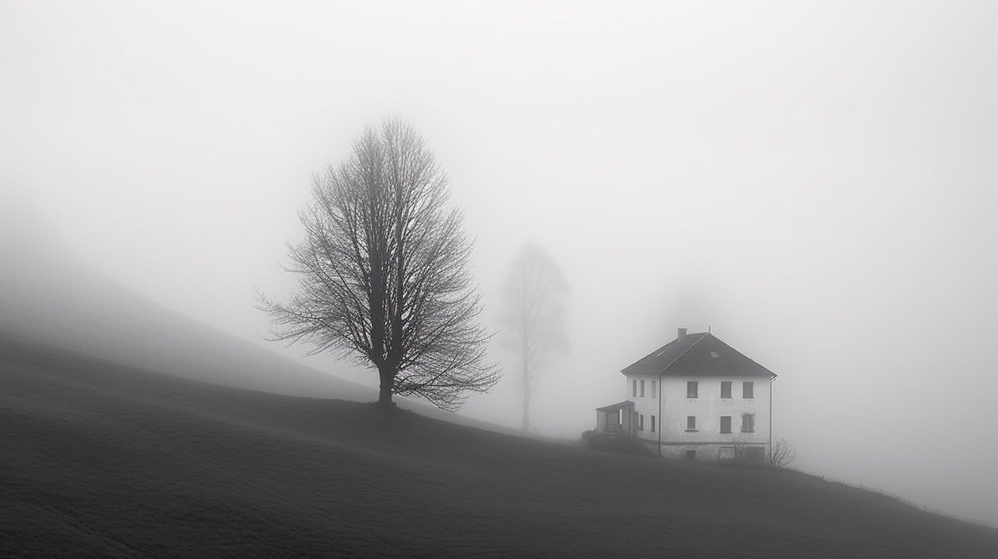 Create monochromatic scenes, where the subject stands amidst dense white fog, which engulfs the surroundings and obscures the background. The colorless image focuses on the subject’s silhouette and subtle details, resulting in a haunting, captivating visual that invites viewers to contemplate the subject’s story and connection to the obscured surroundings.