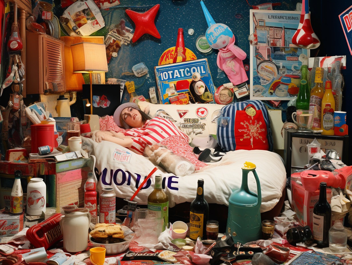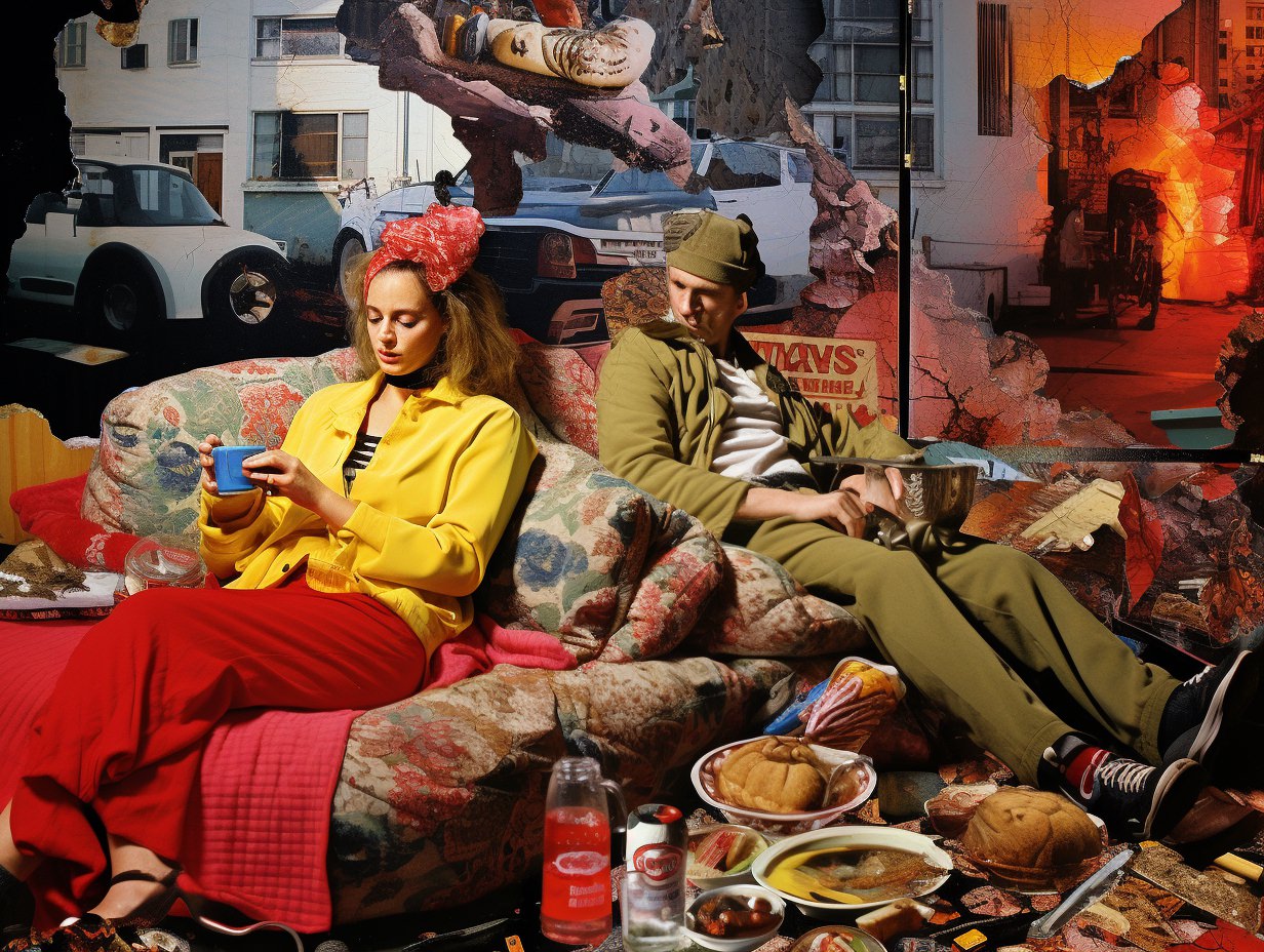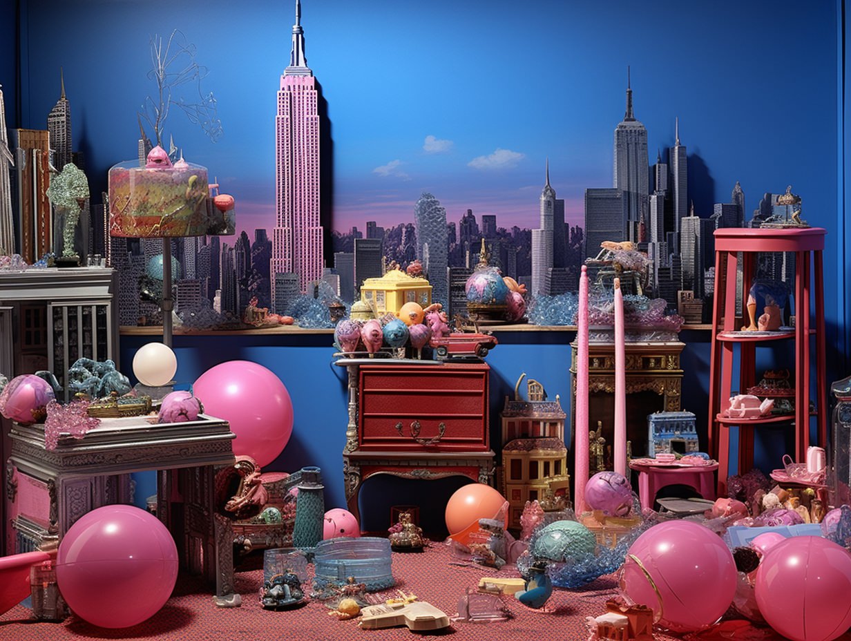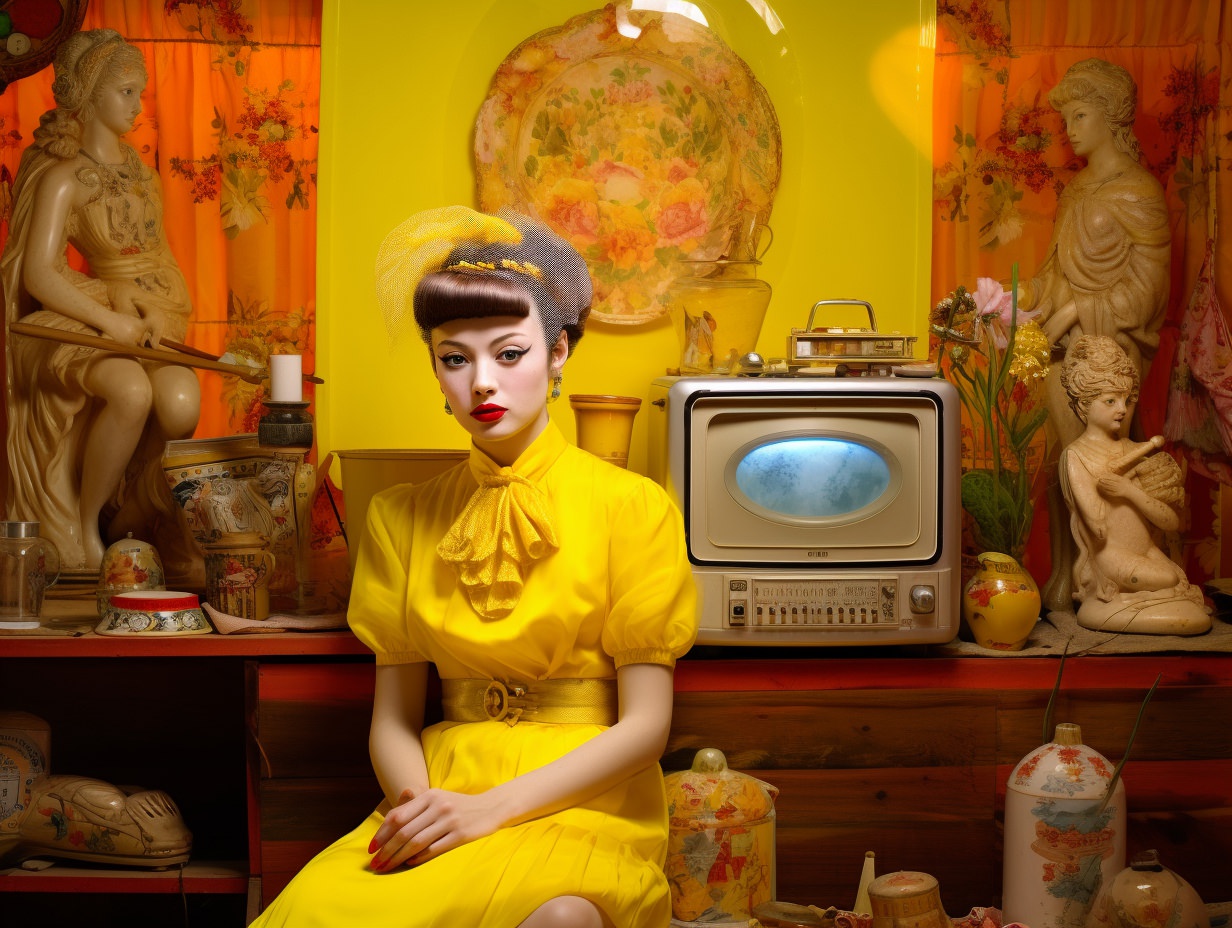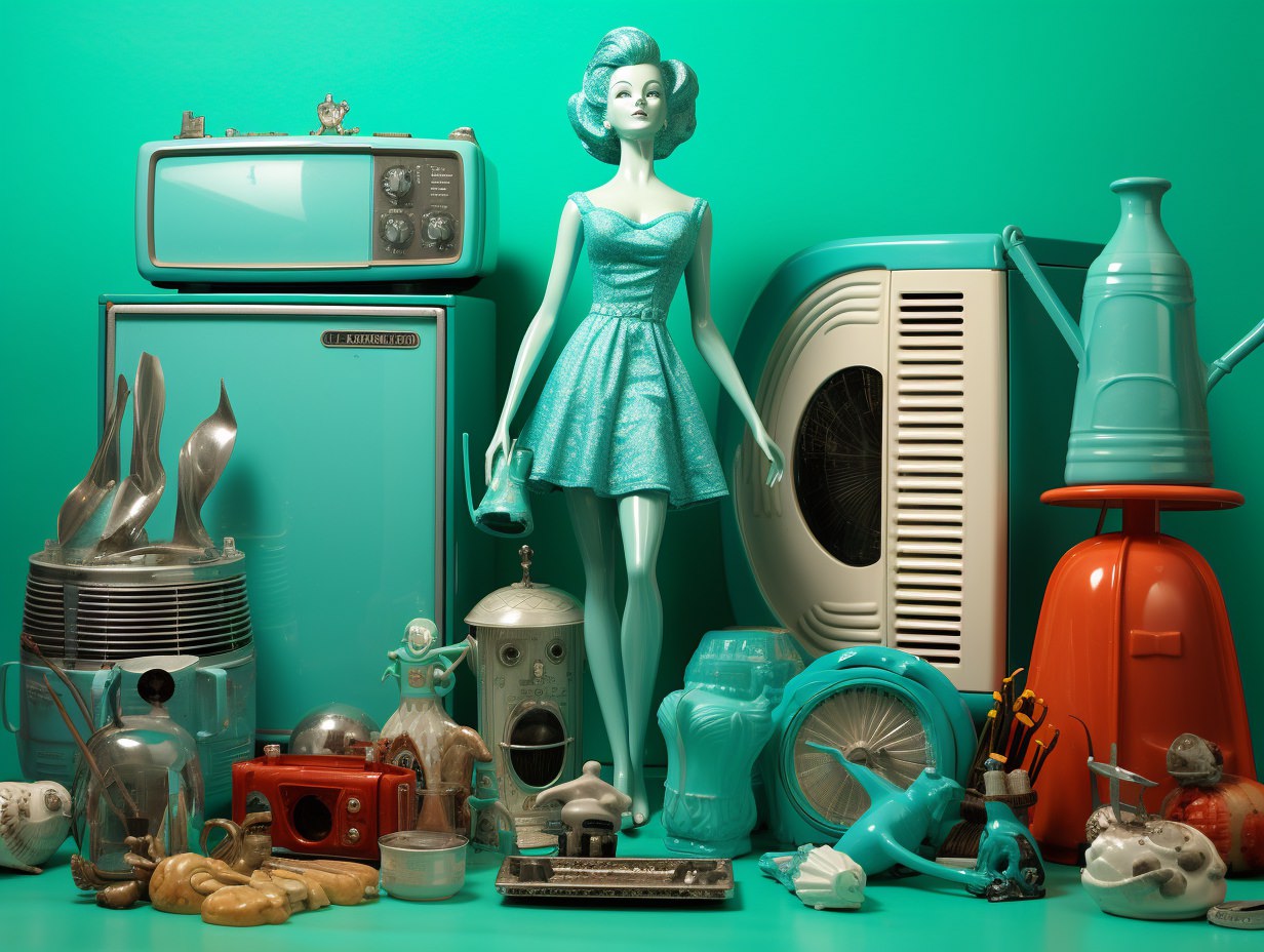A celebration and sometimes ironic utilization of popular culture artifacts, aesthetics, and styles deemed to be in “poor taste,” often because of their mass-produced, gaudy, or overly sentimental qualities. It’s marked by a curious blend of nostalgia and irony, challenging the lines between “high” and “low” art, embracing elements traditionally seen as garish, cheap, or overtly sentimental. Taking symbols and designs from earlier decades, especially the mid-late 20th century, and repurposed them in contemporary settings, often with a touch of irony. This resurgence in popularity was evident in various mediums, from visual arts to interior design and fashion. Everyday objects, nostalgic imagery from the ’50s to the ’80s, and elements seen as tacky or in bad taste are suddenly celebrated again. The use of vibrant colors, plastic or faux finishes, and a mix of disparate styles as a commentary on consumer culture, mass production, and the fleeting nature of trends, provoking debate about authenticity, artistic value, and the boundaries of taste.