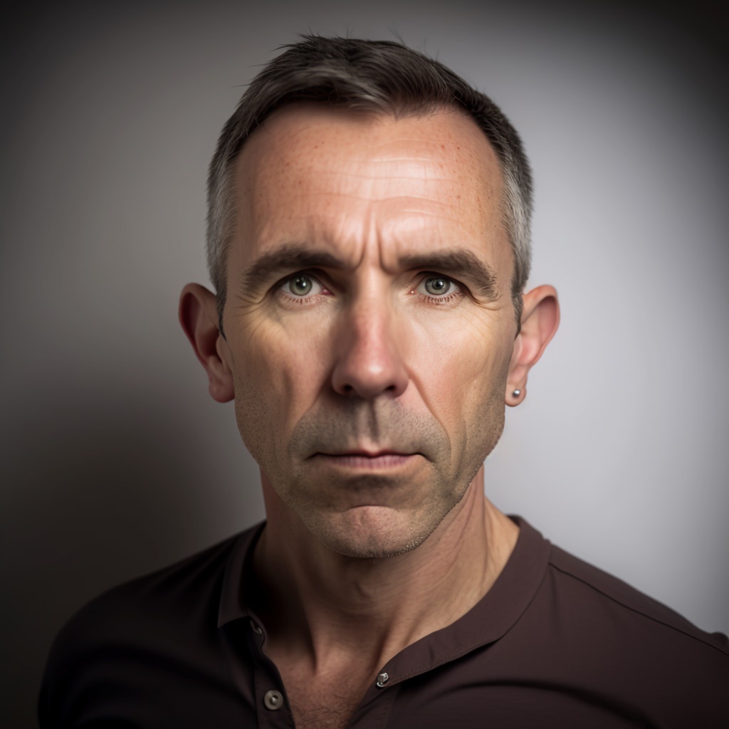 Portrait photo of a 40 year old man, studio lighting, white background, shot on Fujifilm Pro 400H --c 10 --v 4