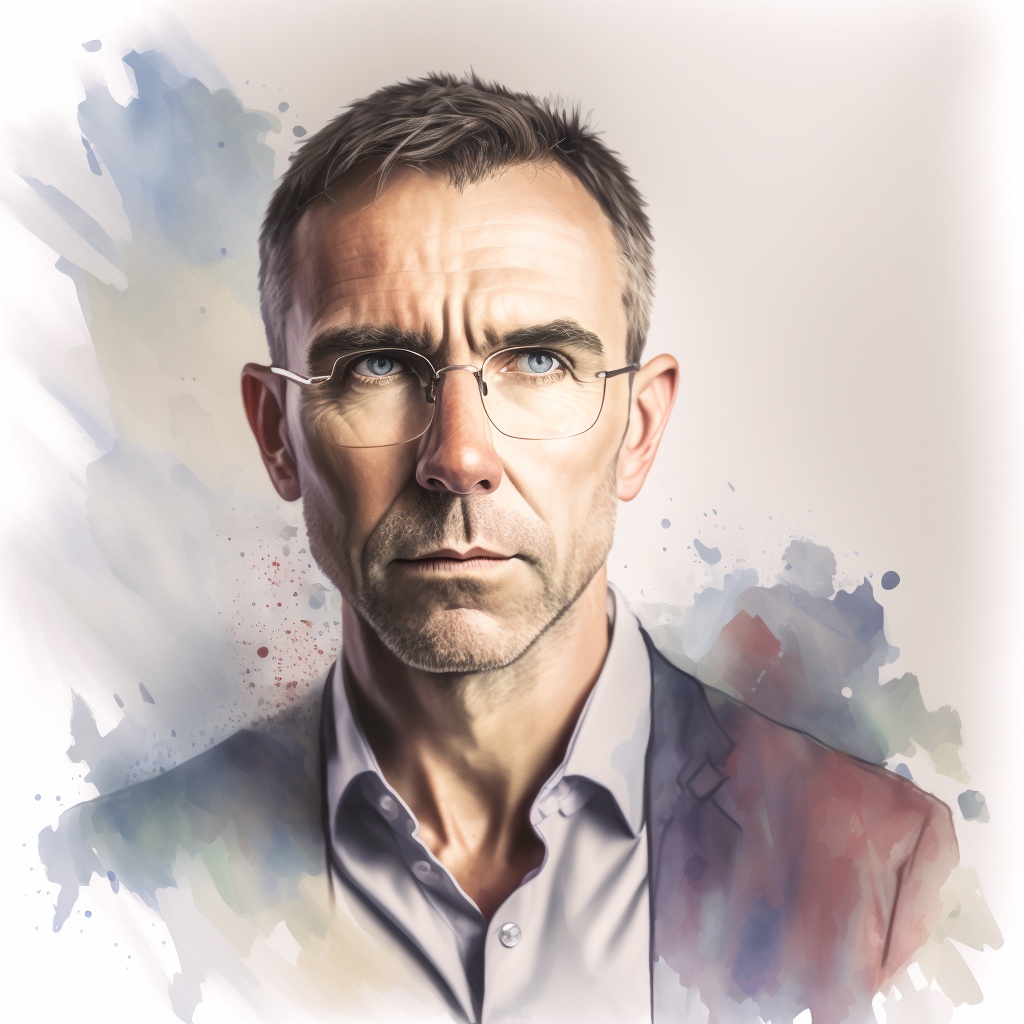Successful finance professional, clean, cool, modern, white background, no text, data, watercolor, pastels