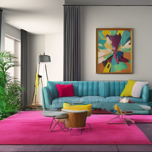 Prompt: cozy mid century 80’s modern interiors, bold colours , 3D blender render