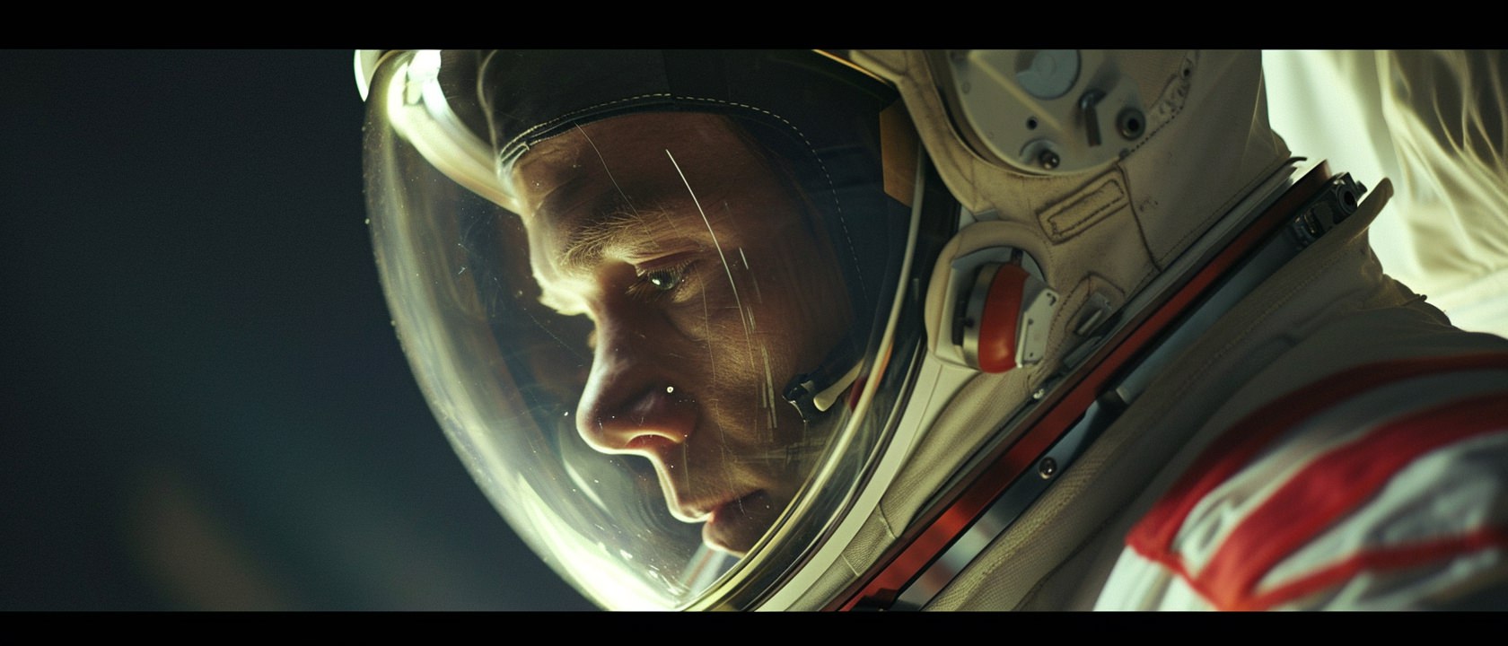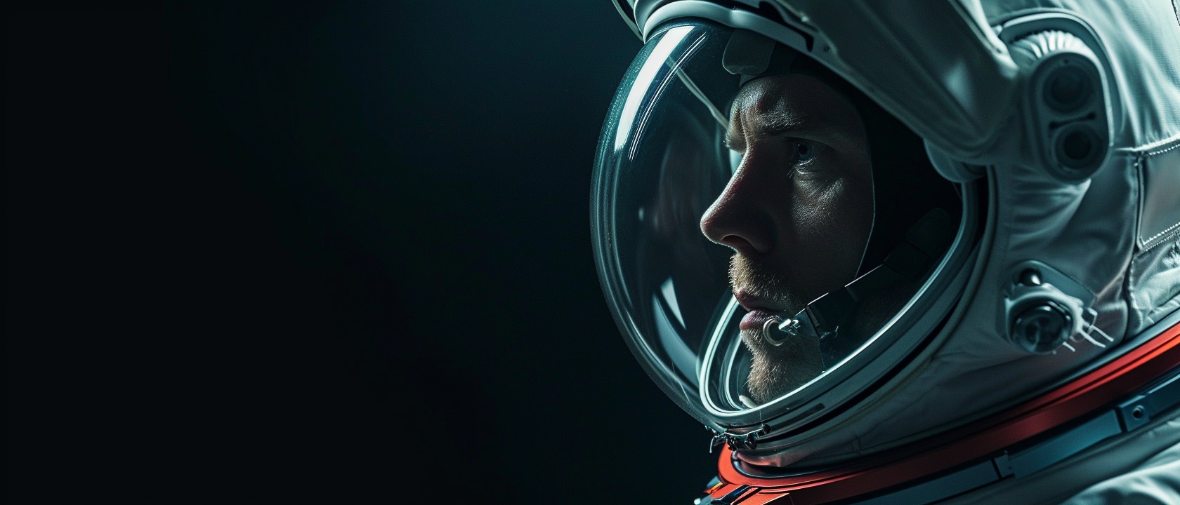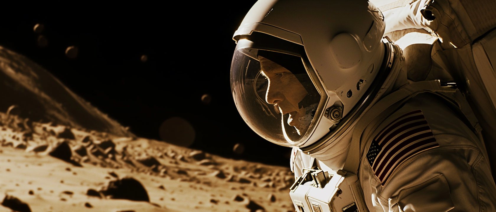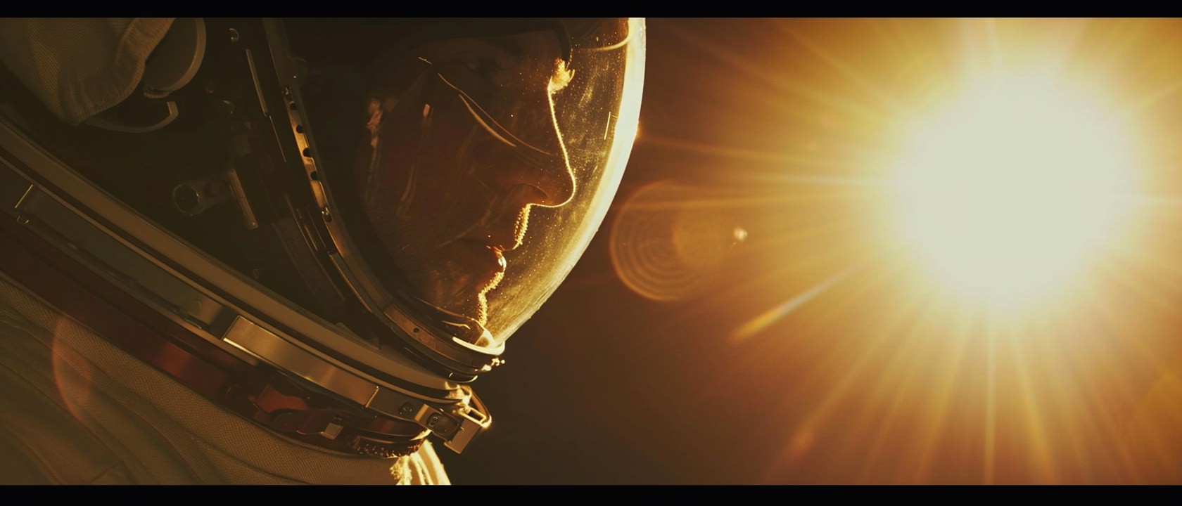 Close-up photo of an astronaut, side view, [Earth,Mars,Moon,Saturn,Venus,Jupiter,Neptune,Uranus], movie still --ar 21:9 --v 6.0