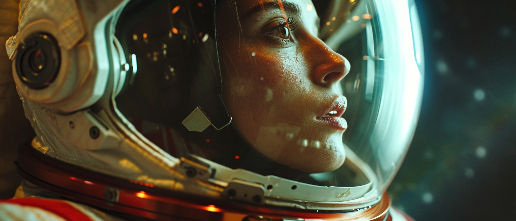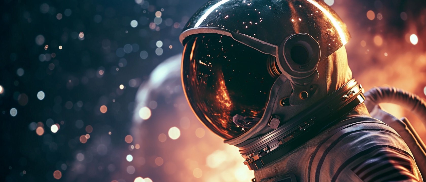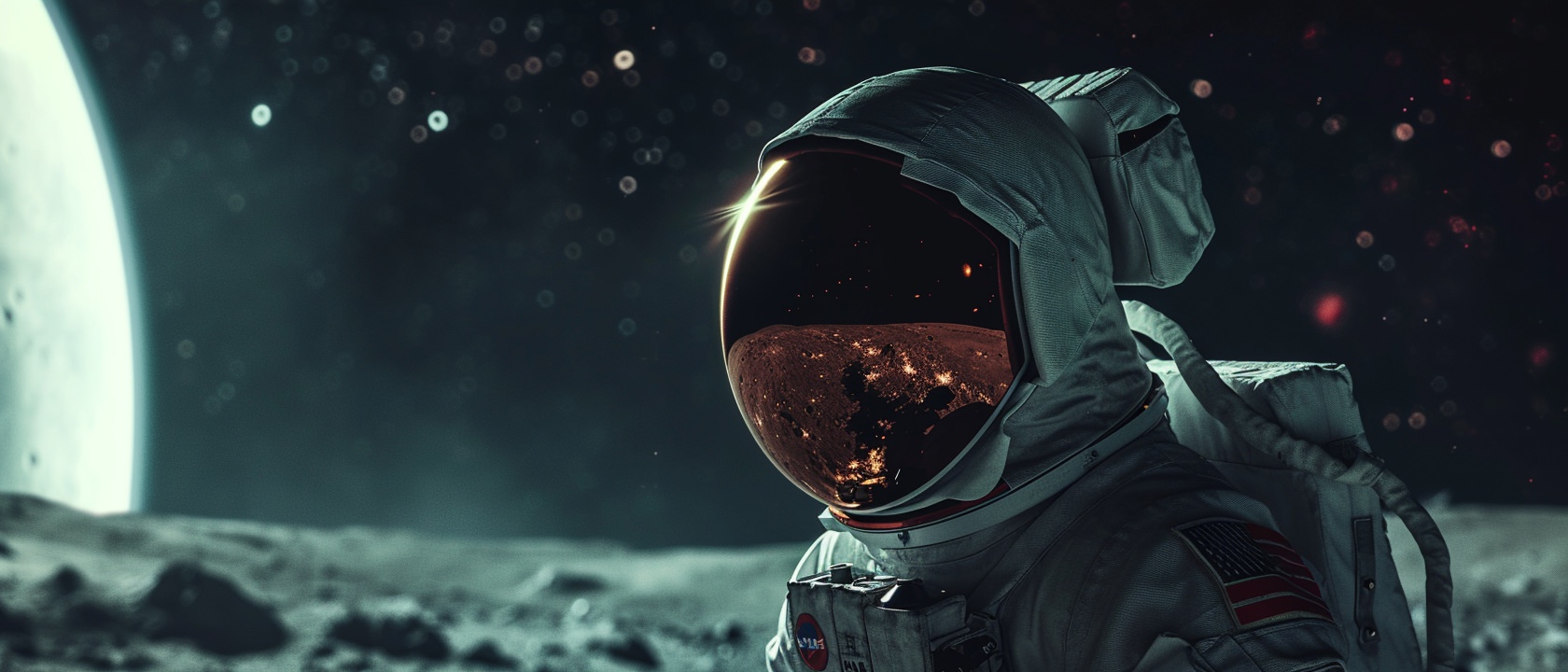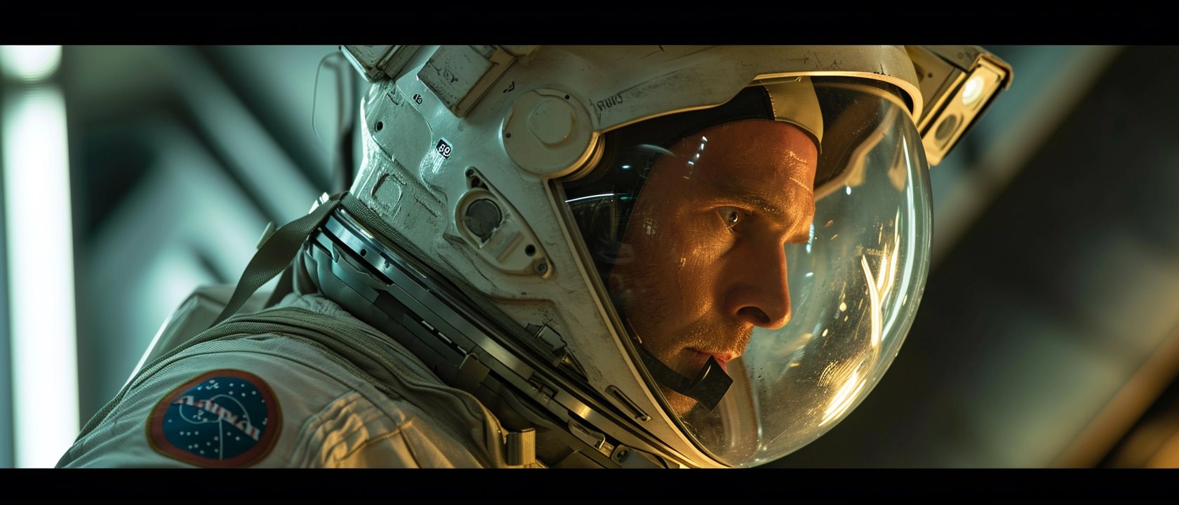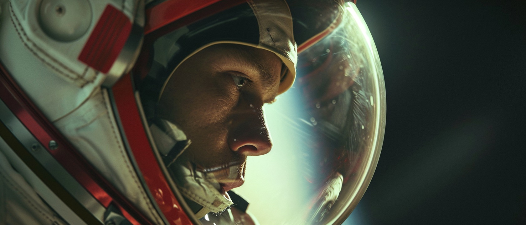 Close-up photo of an astronaut, side view, [Earth,Mars,Moon,Saturn,Venus,Jupiter,Neptune,Uranus], movie still --ar 21:9 --v 6.0
