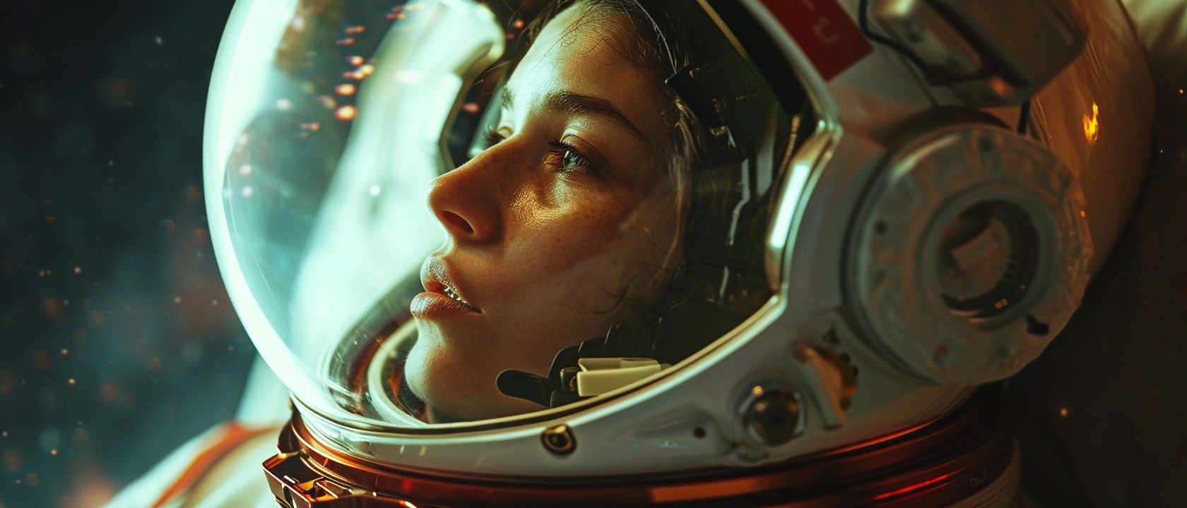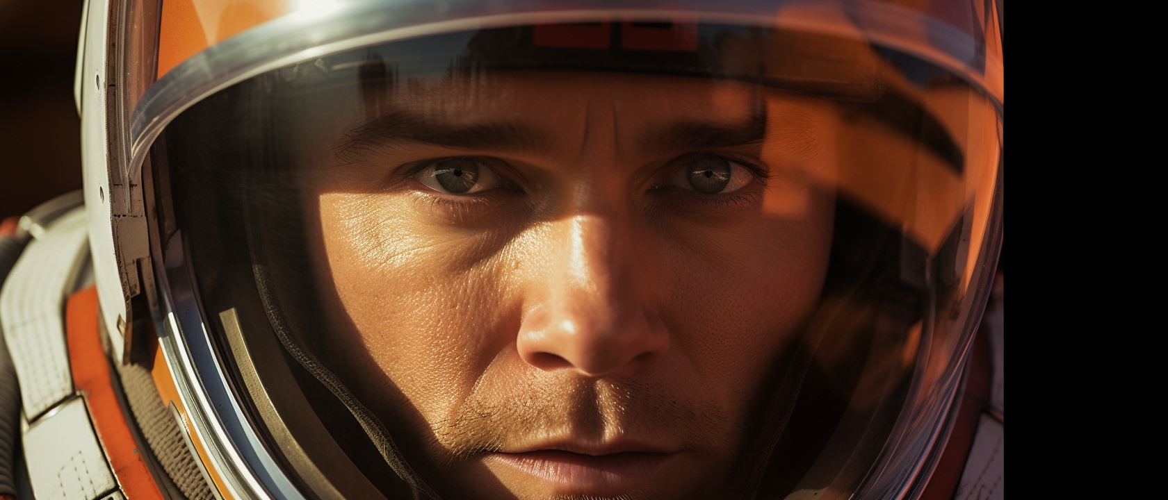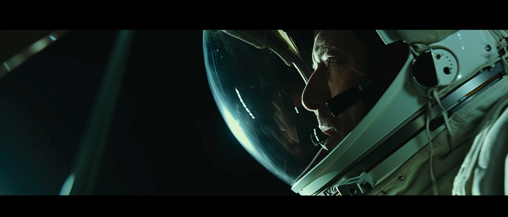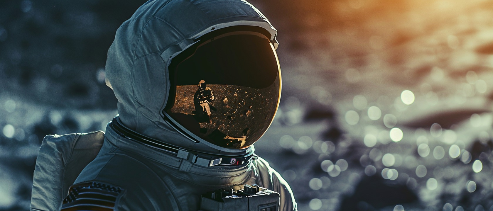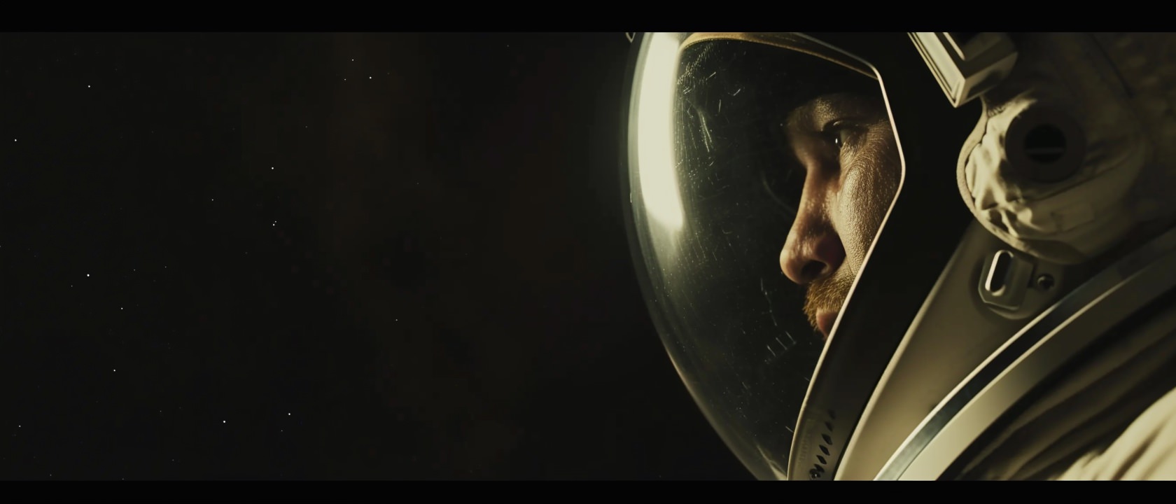 Close-up photo of an astronaut, side view, [Earth,Mars,Moon,Saturn,Venus,Jupiter,Neptune,Uranus], movie still --ar 21:9 --v 6.0