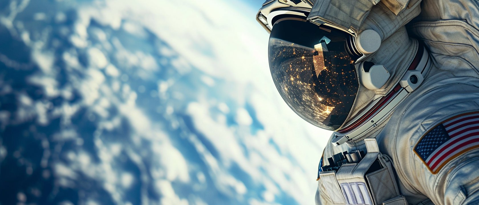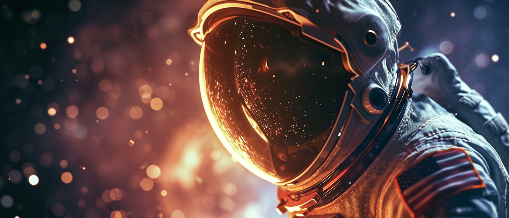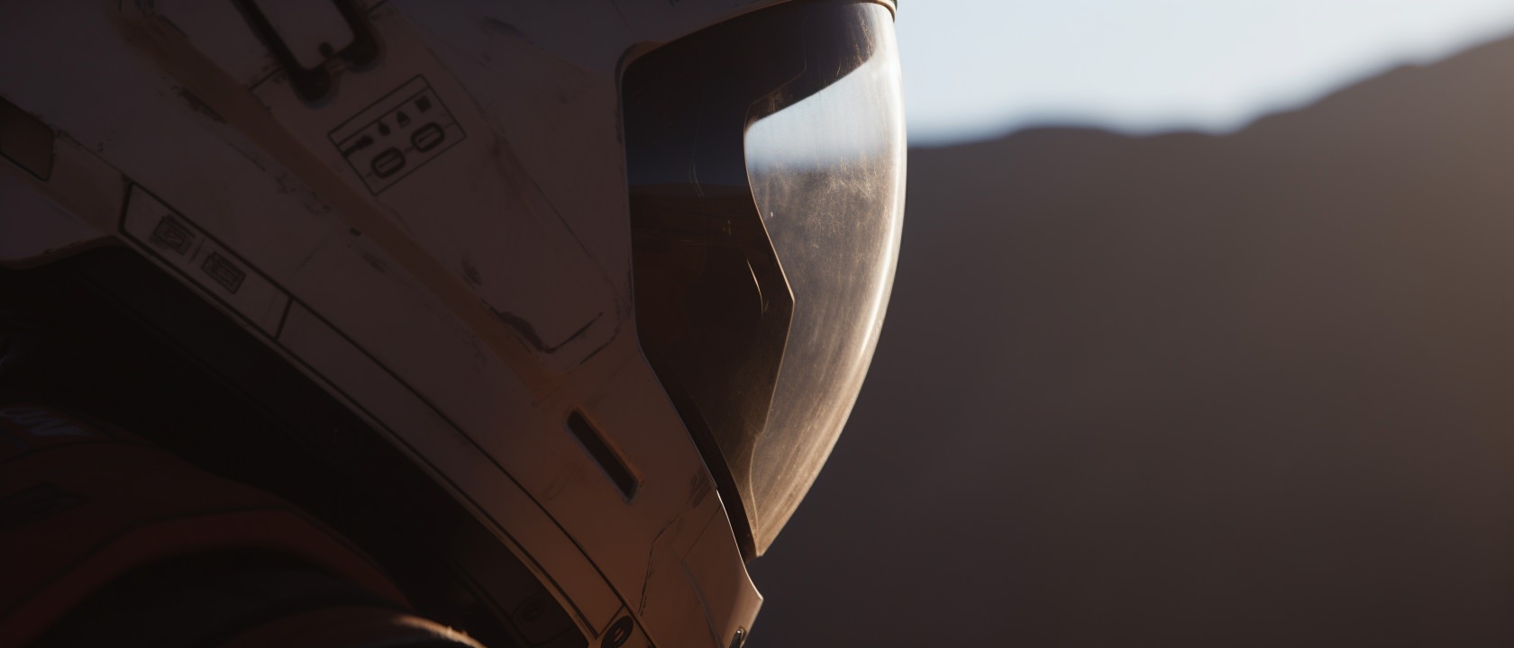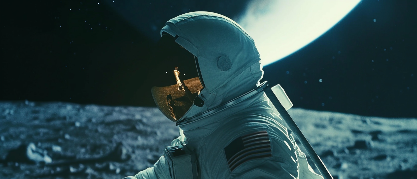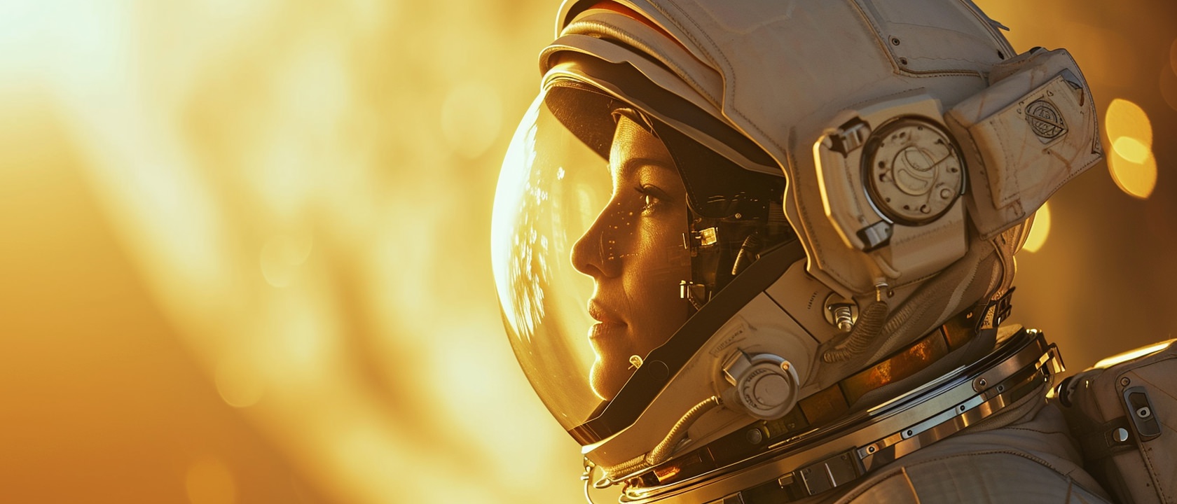 Close-up photo of an astronaut, side view, [Earth,Mars,Moon,Saturn,Venus,Jupiter,Neptune,Uranus], movie still --ar 21:9 --v 6.0