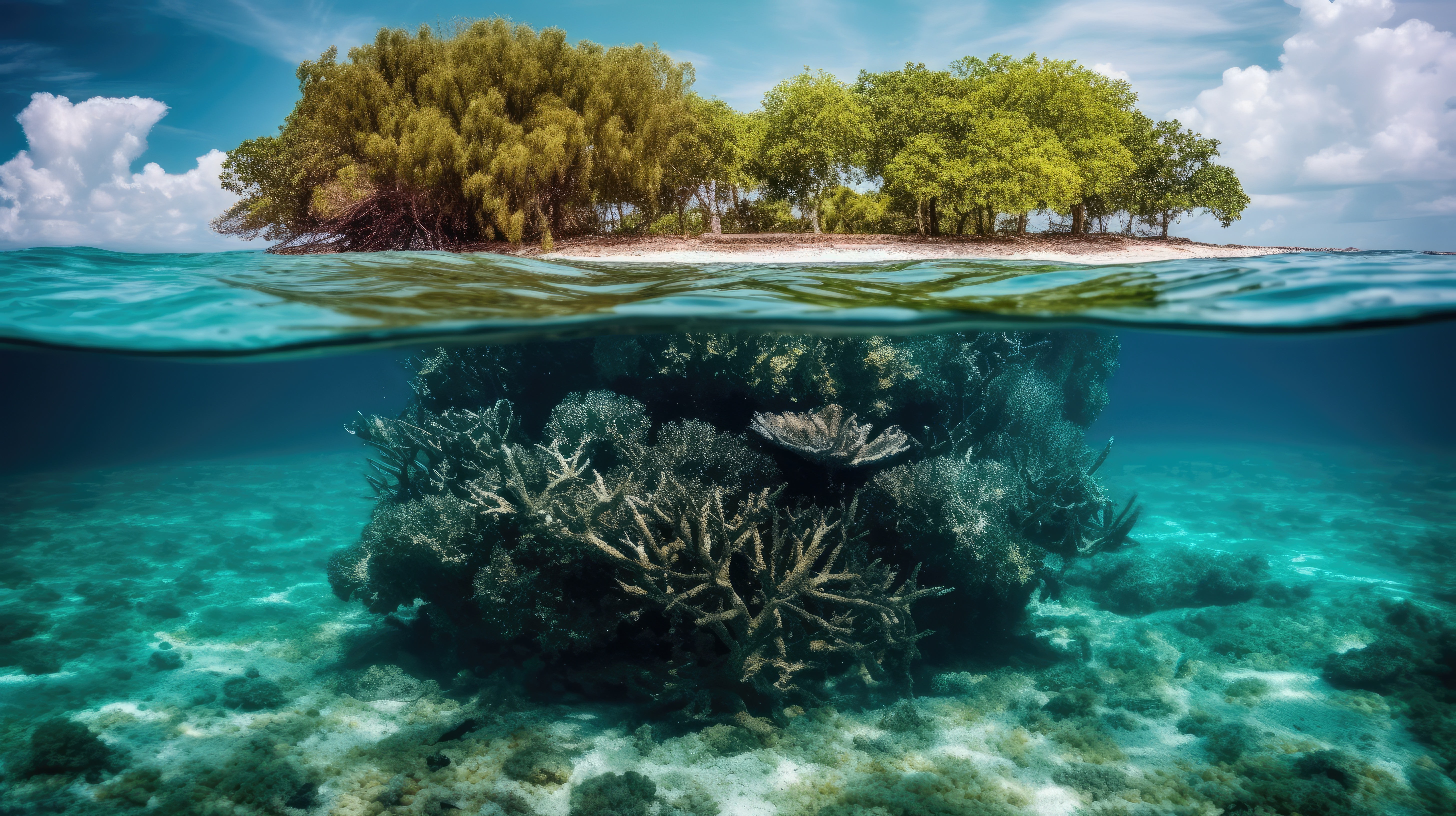 The collection invites viewers to explore the contrast between lively underwater landscapes and the calm skies above. Showcasing a variety of marine life alongside idyllic coastal settings, the series highlights the diverse beauty of our planet and reminds us of the interconnectedness of life on Earth.