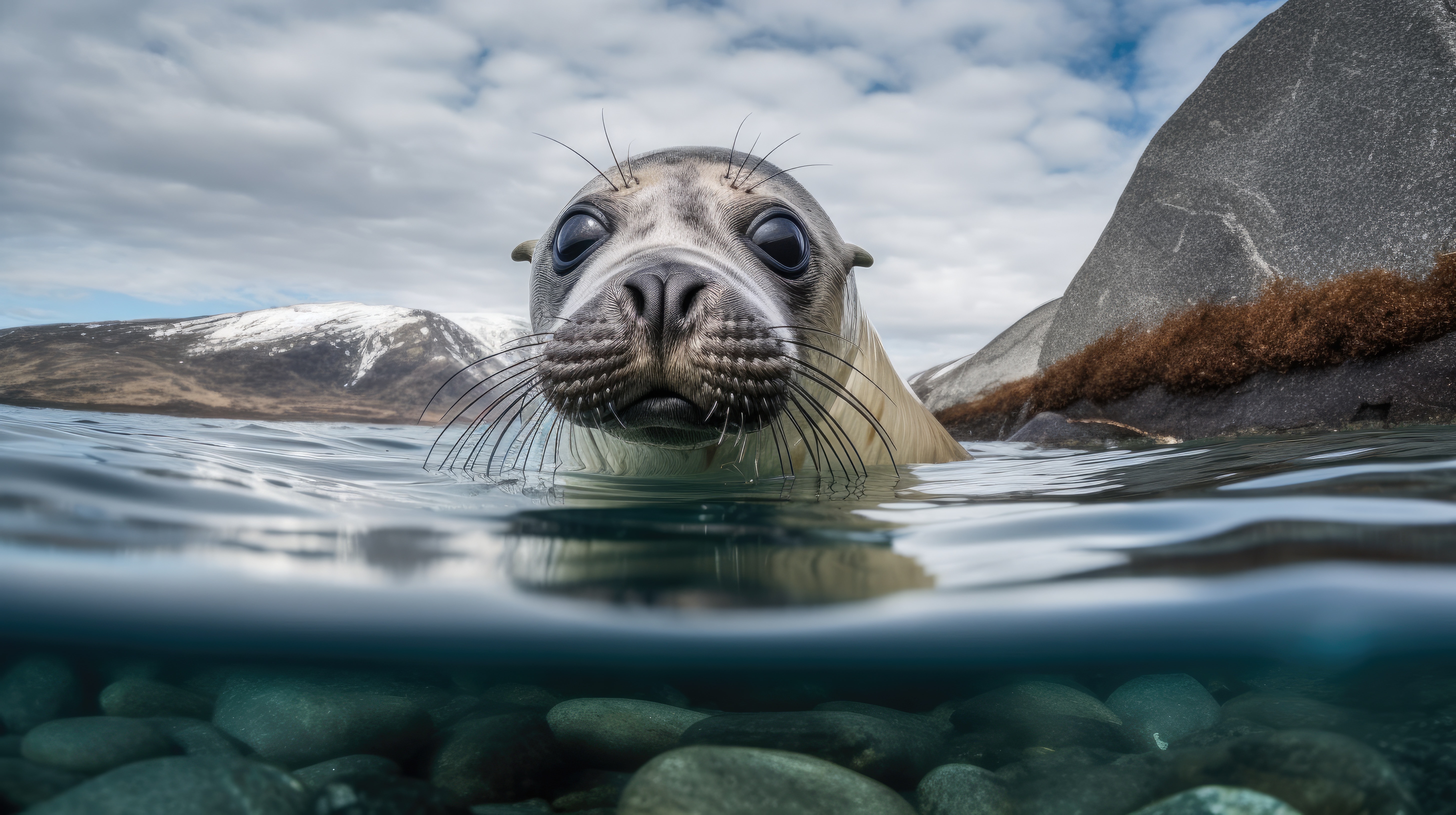“Parallel Worlds: Unveiling the Hidden Depths” is a photographic series that provides an intriguing look into the dual environments of water and air. Each image features a split view, with the top half capturing the scene above water and the bottom half delving into the underwater world.
