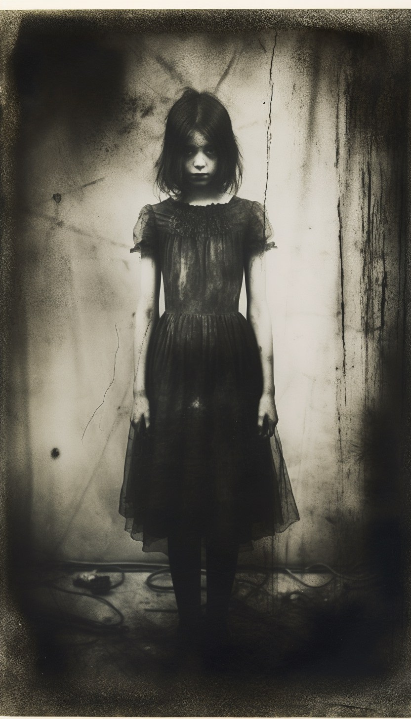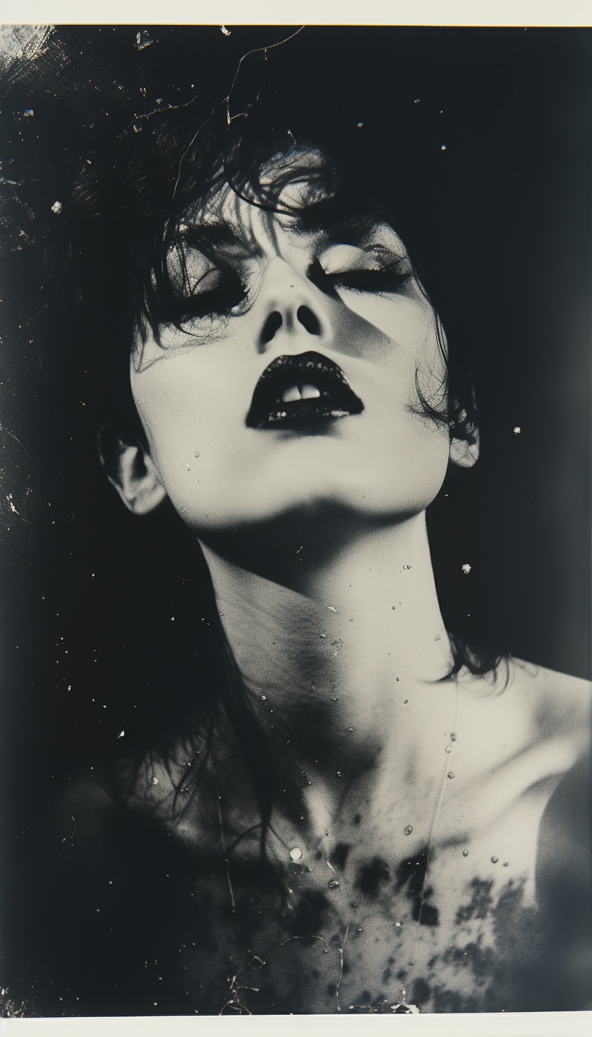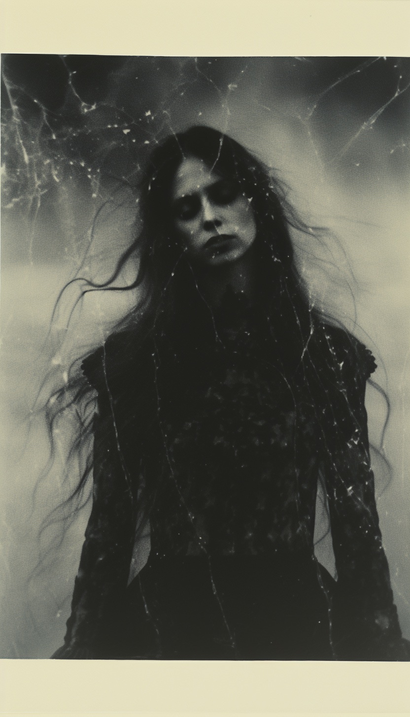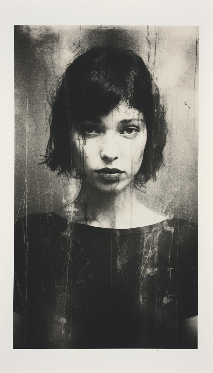 Expired polaroid film portrait of a [subject], strange :: darkroom print :: in the style of photocopy print --ar 4:7 --v 5.2