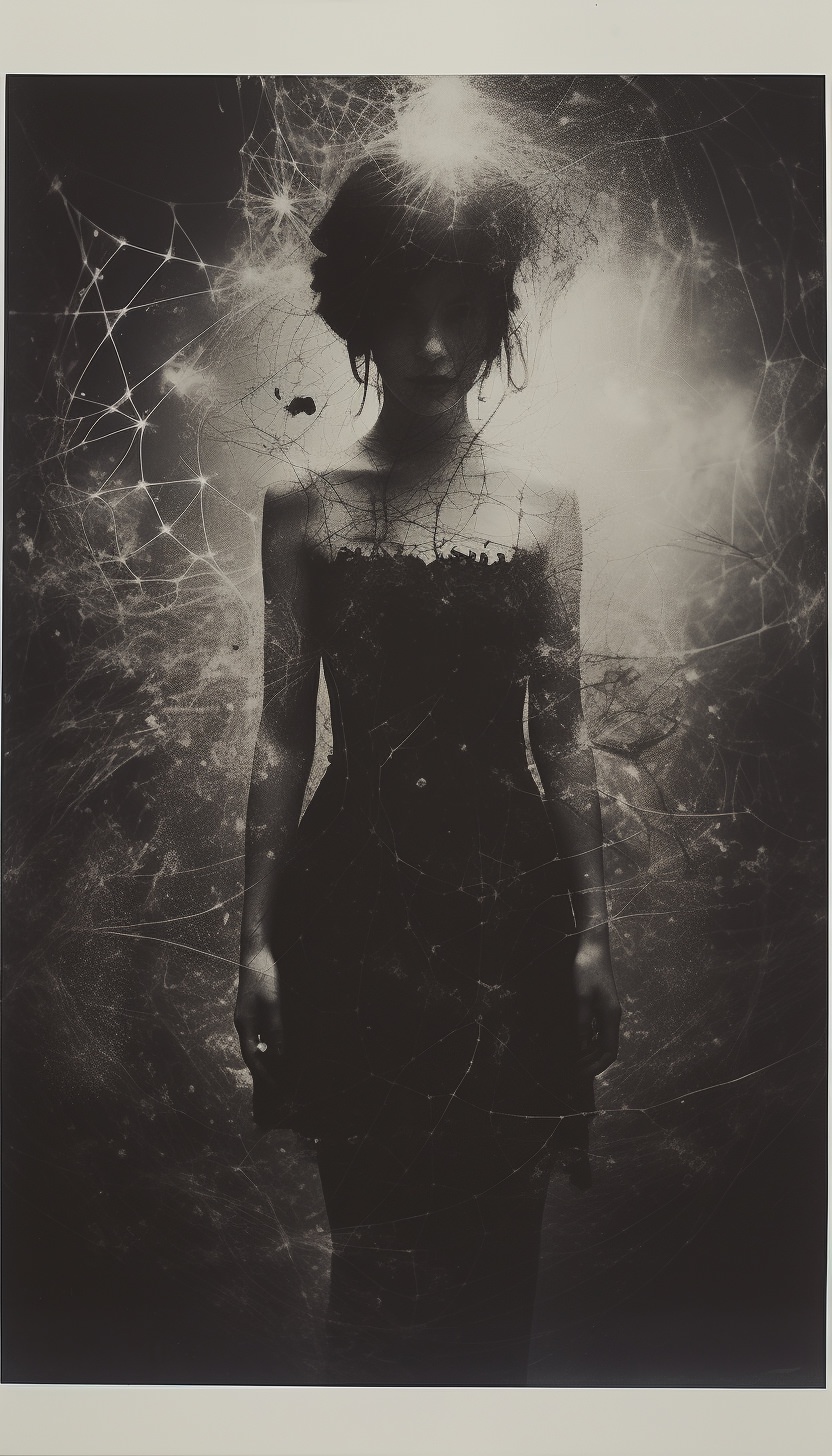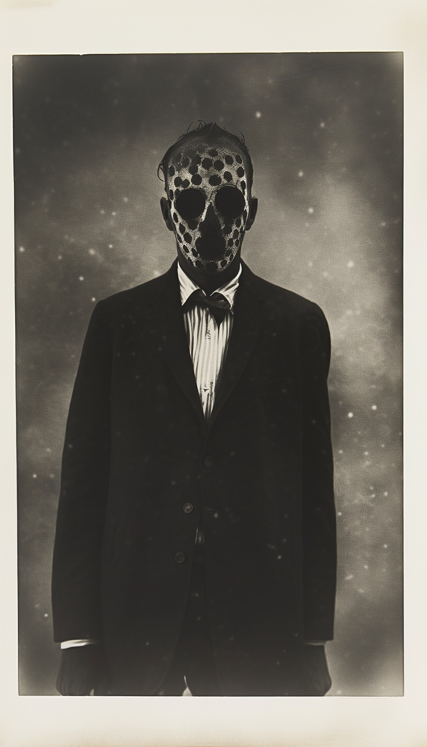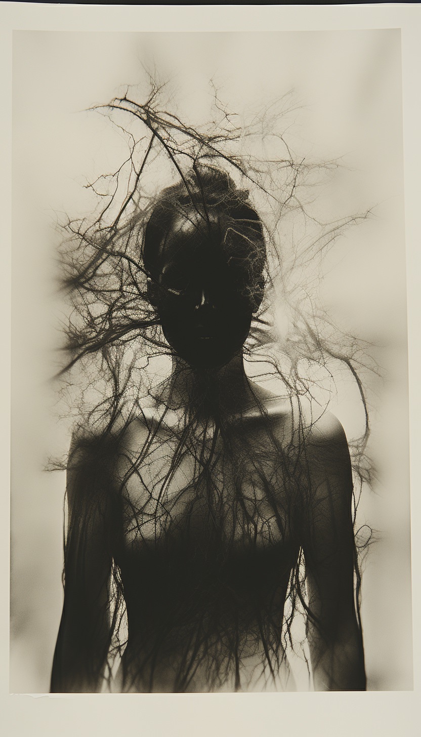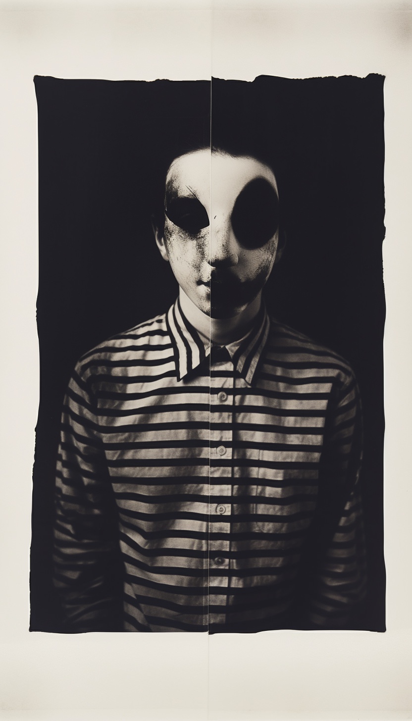 Expired polaroid film portrait of a [subject], strange :: darkroom print :: in the style of photocopy print --ar 4:7 --v 5.2