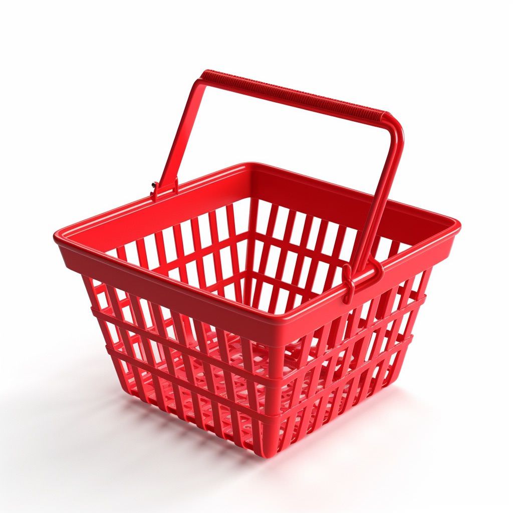 tiny red shopping basket on an isolated white background, an icon, isometric 45 degree rotation, solid white background, realistic, a 3D render, a 3D rendering, very slight shadow, plastic, claymation, plastic, simple graphic, minimalist, minimalism, soft light overhead, polycount, photorealism, rendered in maya, rendered in cinema4d, rendered in blender, rendered in aztec, physically based rendering, Diffraction Grading, Chromatic Aberration, GB Displacement, Scan Lines, Ray Traced, Ray Tracing Ambient Occlusion, Anti-Aliasing, FXAA, TXAA, RTX, SSAO, Shaders, OpenGL - Shaders, GLSL - Shaders,Post Processing, Post-Production, Cel Shading, Tone Mapping --v 5 --c 8 --s 800
