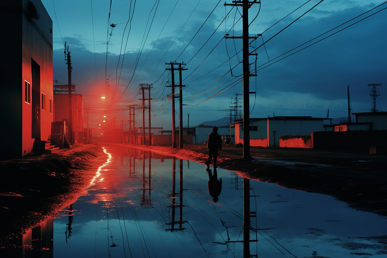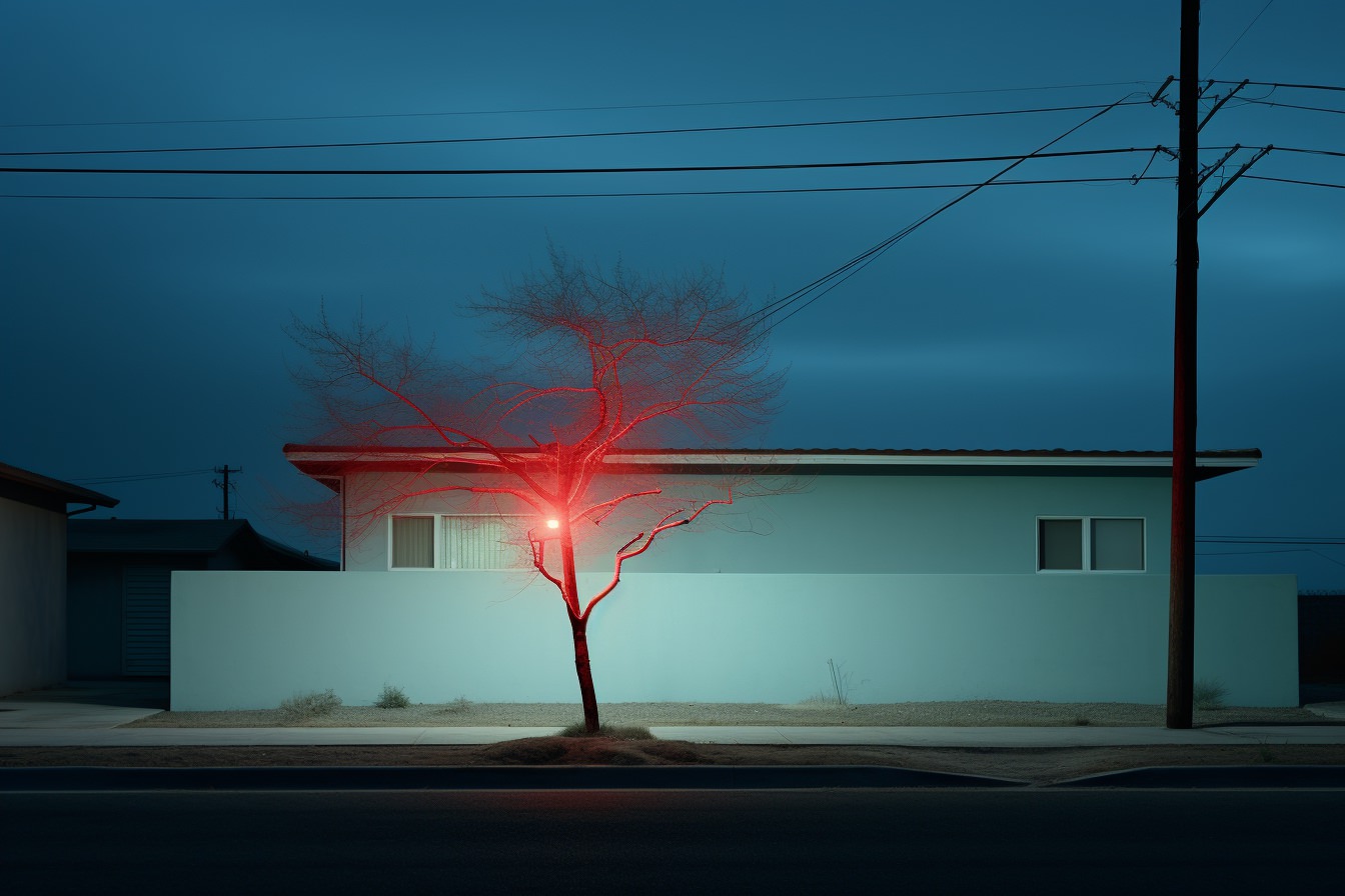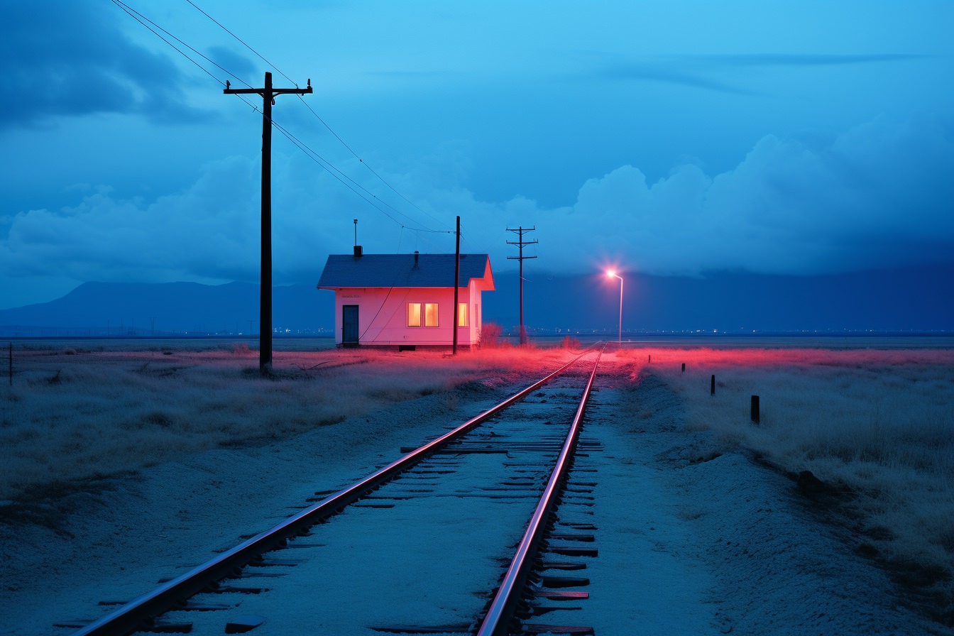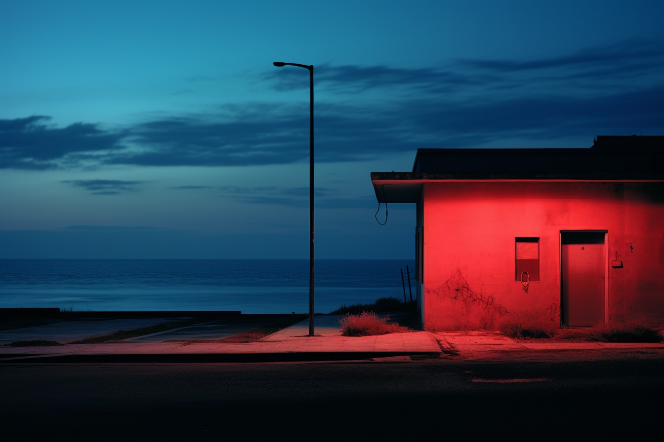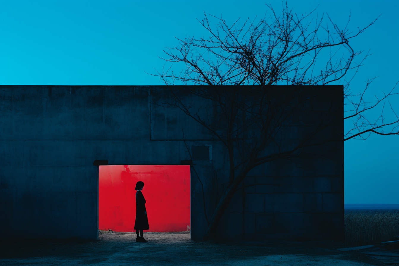Whispers of memories breathe through the minimal colorful modern landscapes of 'Silent Echoes', a twilight analogue photograph, where stark contrasts of black and vibrant whites converge, evoking haunting expressionist undertones inspired by René Magritte and Daido Moriyama, amidst contemporary political tension in a totalitarian state --s 250 --v 5.2 --style raw --ar 3:2